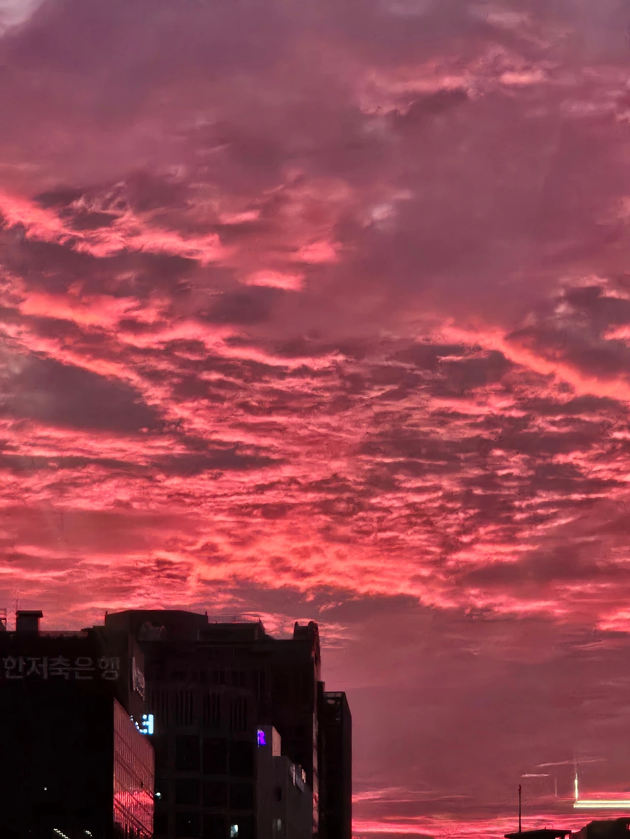 마치 건물 너머 저 편은 바다인 것 같았다. 바다에 펼쳐진 노을처럼 보였다. 시간이 지날수록 점점 진한 붉은색이 되었다. 20대 때 이 노래를 들었을 때는 그냥 감성적으로만 들었는데 노래 가사를 쓴 유재하는 정말 붉은 바다를 보았구나 싶었다. 눈으로 보고 느끼지 않고는 그런 가사를 쓸 수 없었을 것 같다.