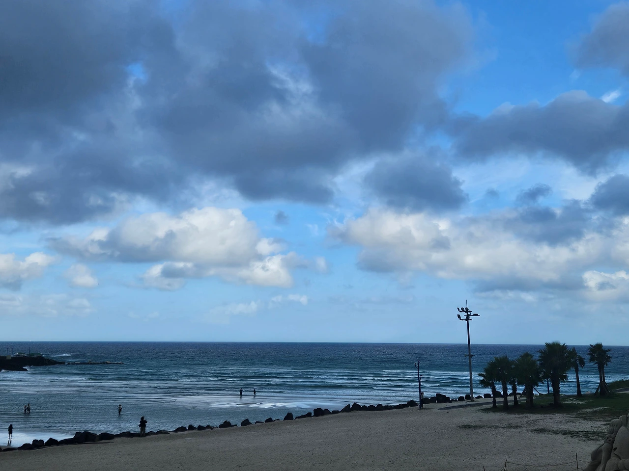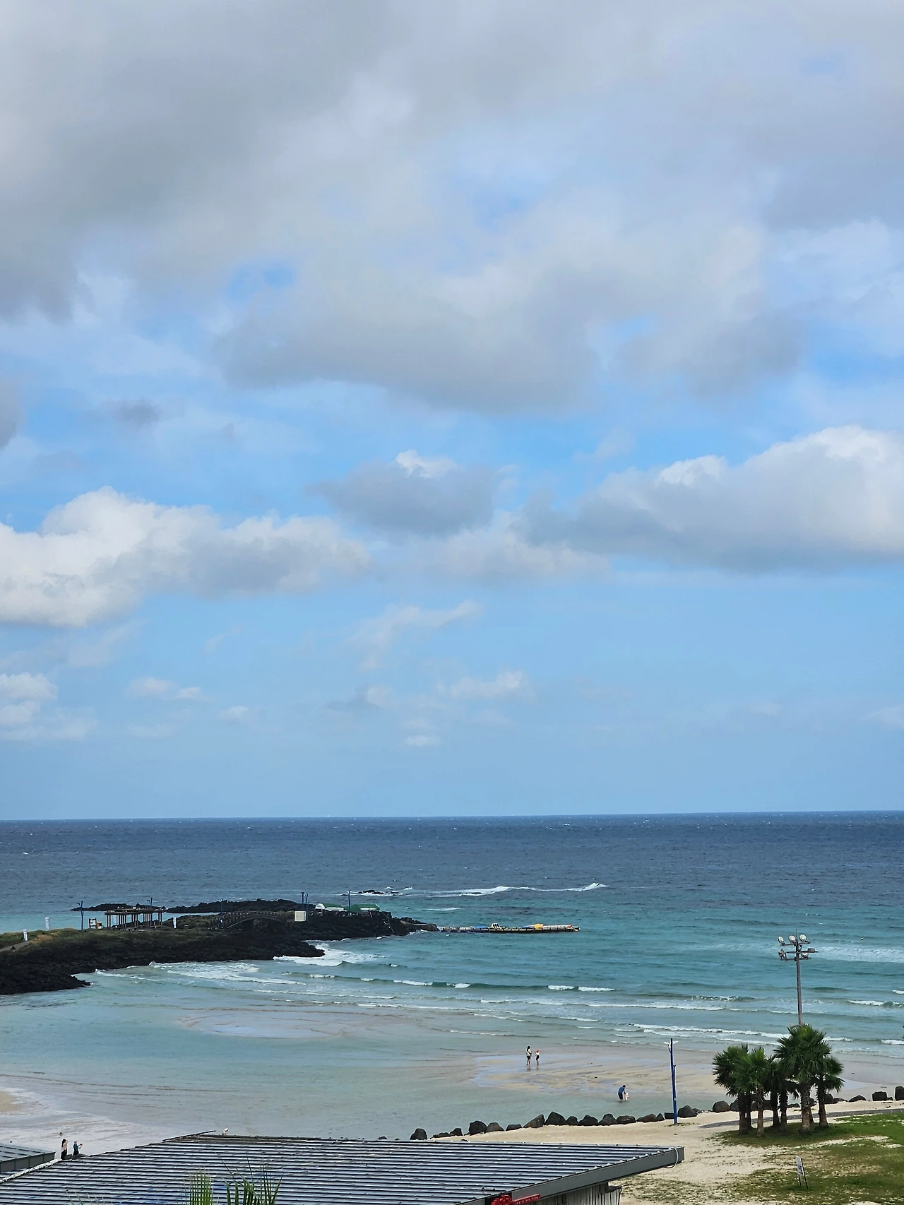 부모님이 숙소에서 먹는 조식 뷔페는 연 이틀 먹은 거로 충분하다고 하셔서 김밥 사러 숙소를 나섰다. 김밥집은 9시부터 주문을 받는다고 했다. 하릴없이 십여분을 주변에서 어슬렁거렸다. 다행히 해변을 볼 수 있어 지루하지 않았다.