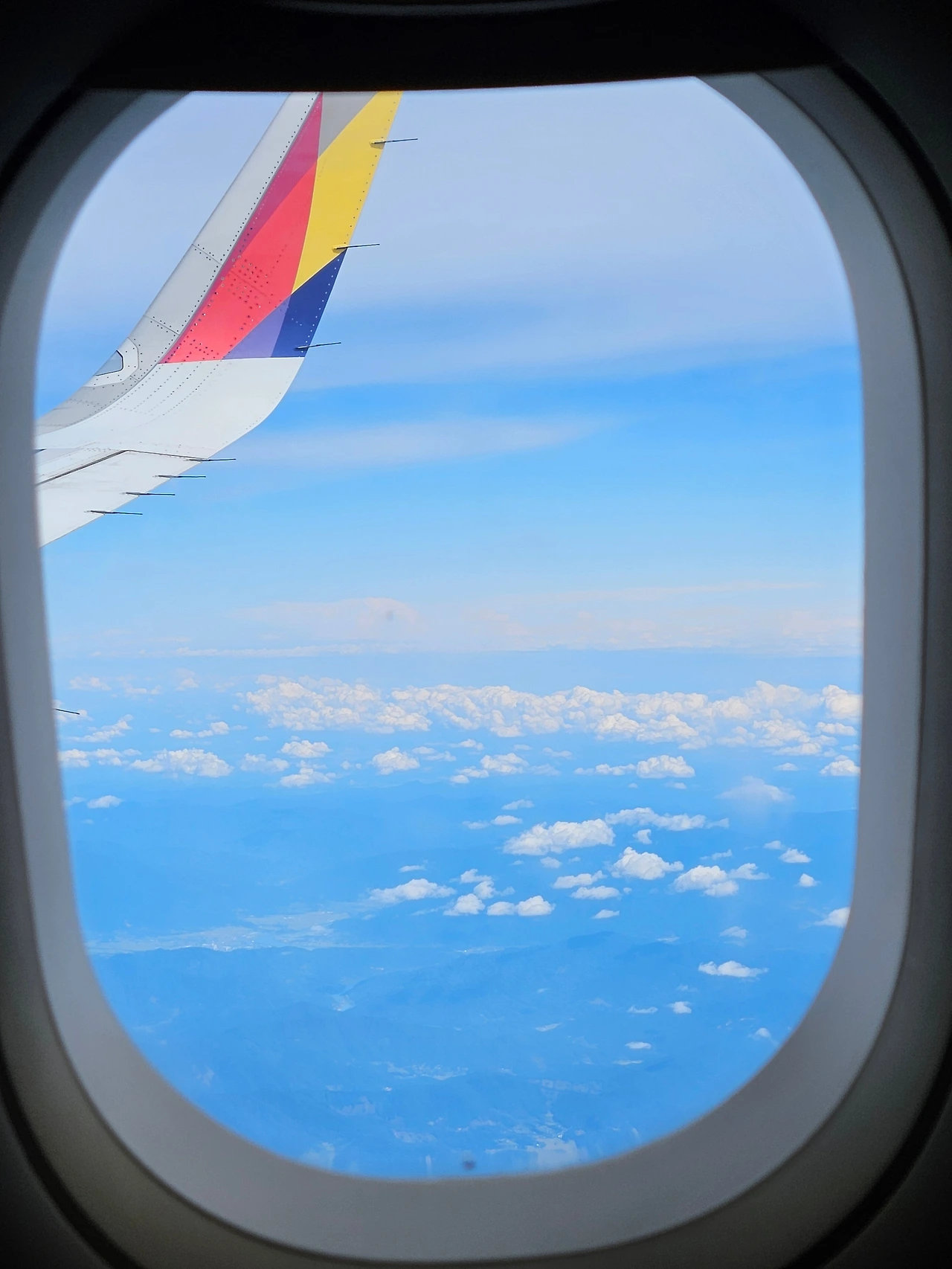 제주도에서만 먹을 수 있는 김밥, 서울로 오는 기내에서 찍은 하늘 (09:42, 13:35)
