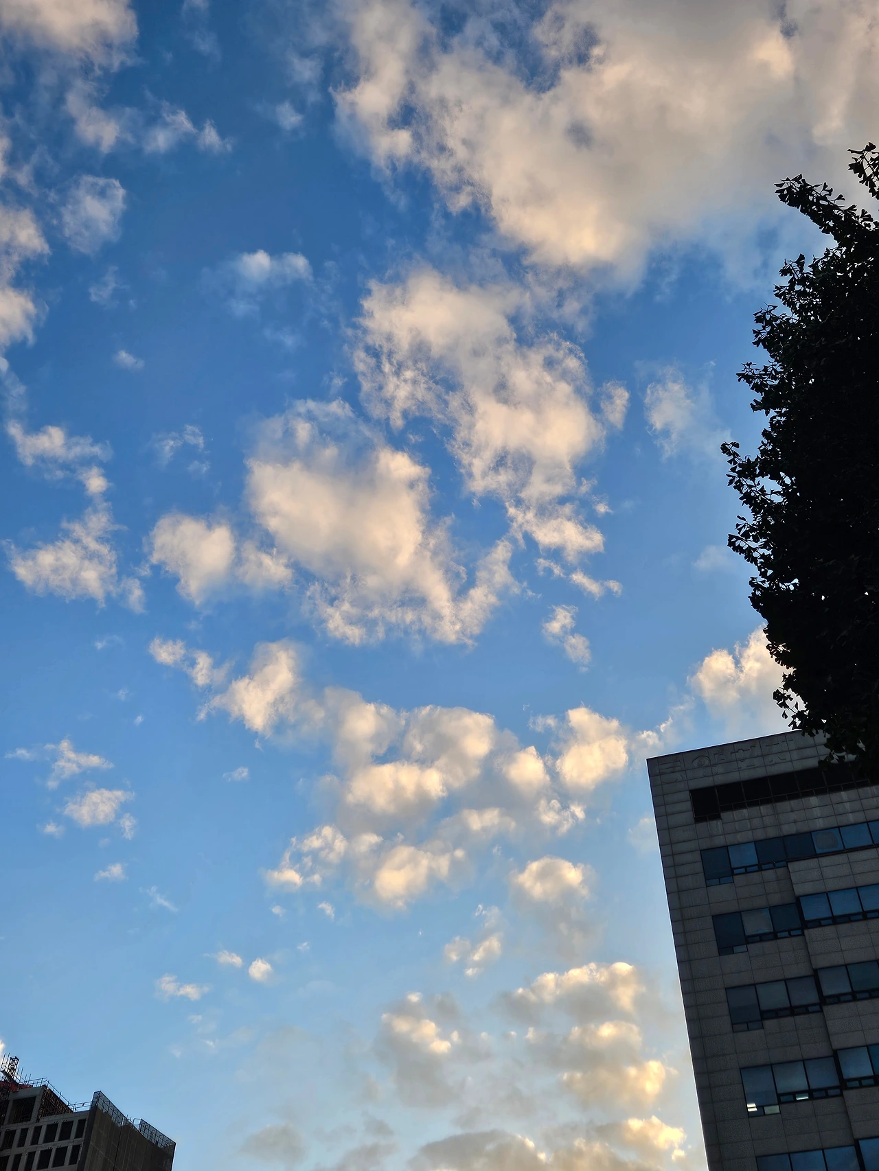 후배와 거의 4시간을 얘기하고 나온 거리. 저녁이 되었다. 어둑해지려는 하늘을 다른 동네에서 보니 색다르게 예뻤다. 하늘을 찍으니 지나가던 사람이 위에 뭐가 있는지 궁금해하며 하늘을 본다.