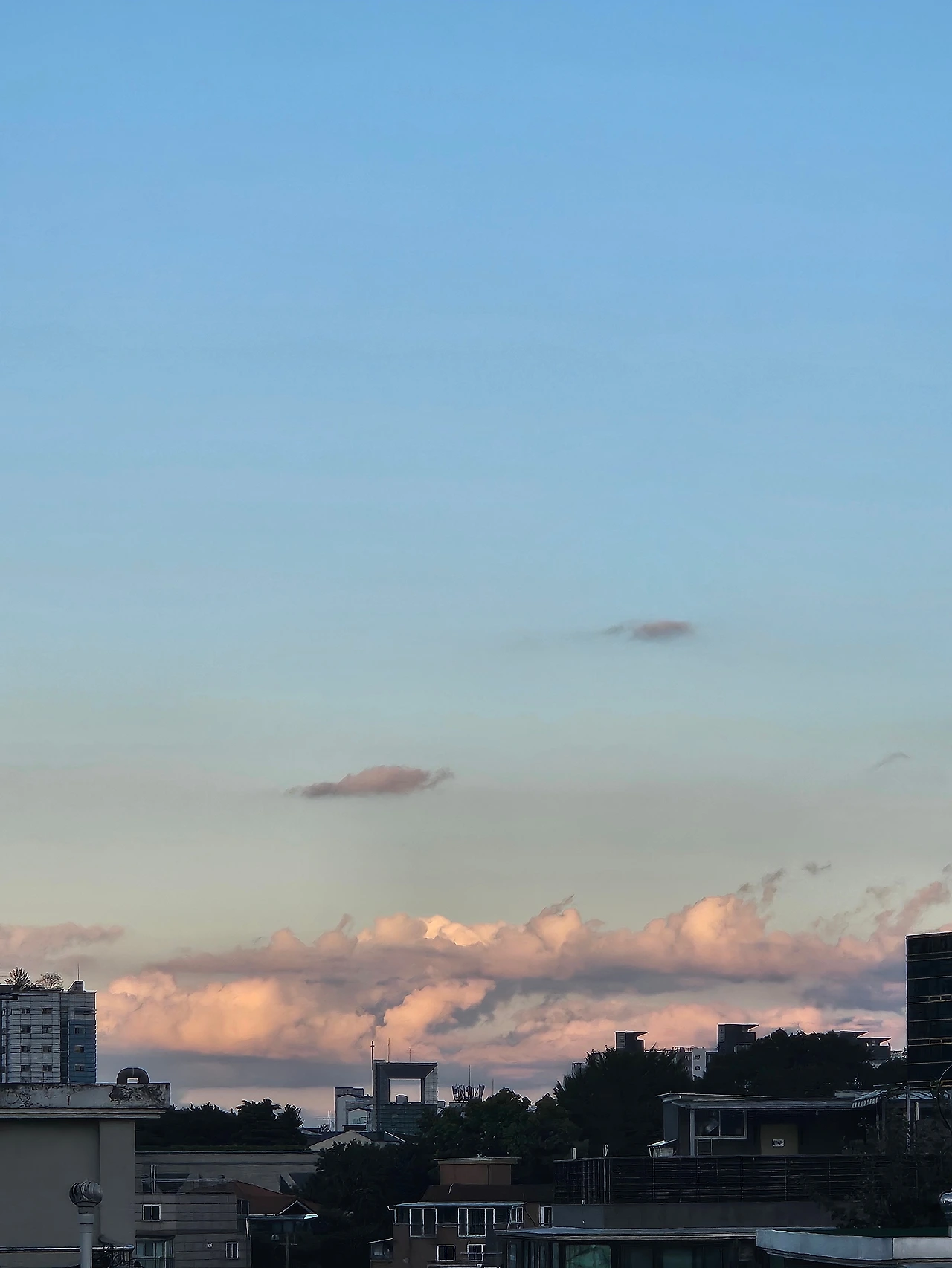 하늘 사진은 집에서만 찍었다. 오전에는 구름 한 점 없는 쨍한 가을 하늘이었다. 해질 무렵에는 멋진 구름과 하늘이었다.