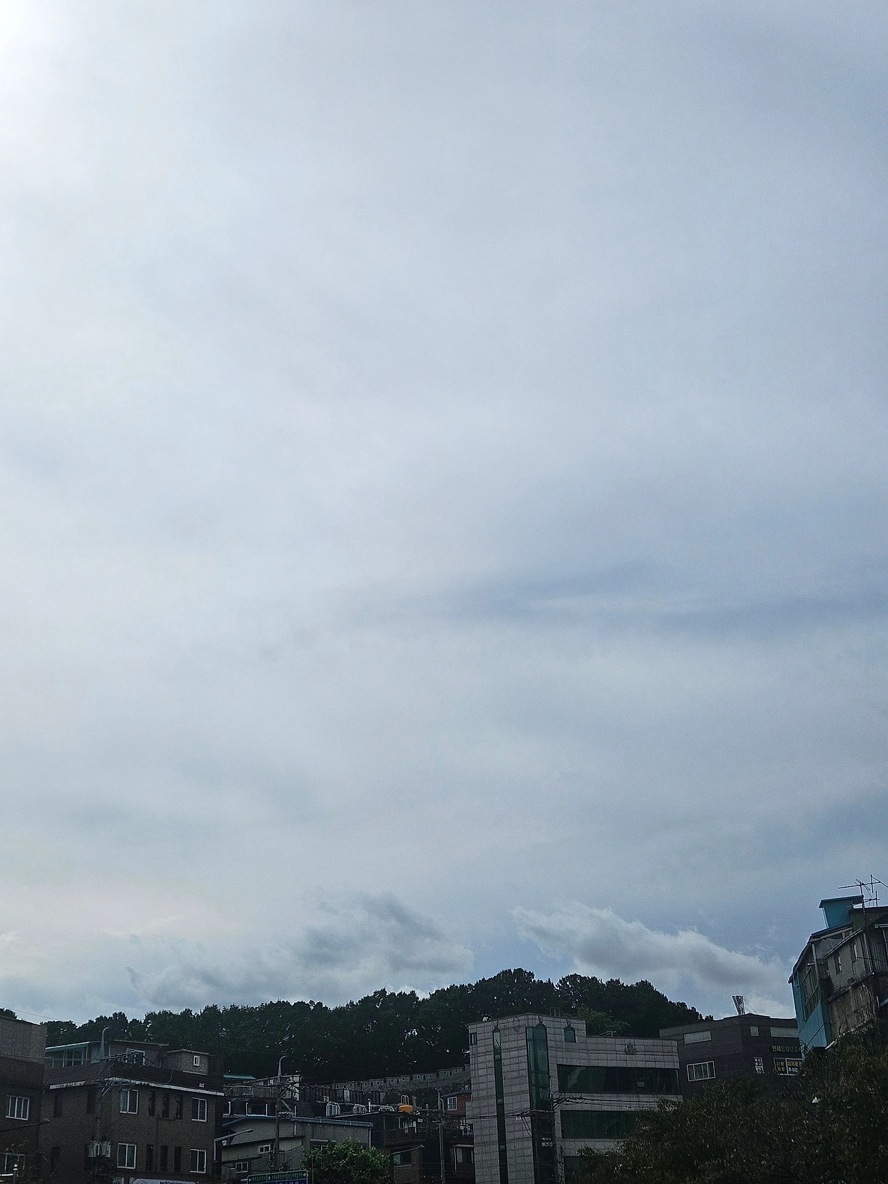 오전에 비가 꽤 내렸는데 오후에 개였다. 하늘은 흐렸는데 서서히 파란 하늘이 모습을 드러내기 시작했다.