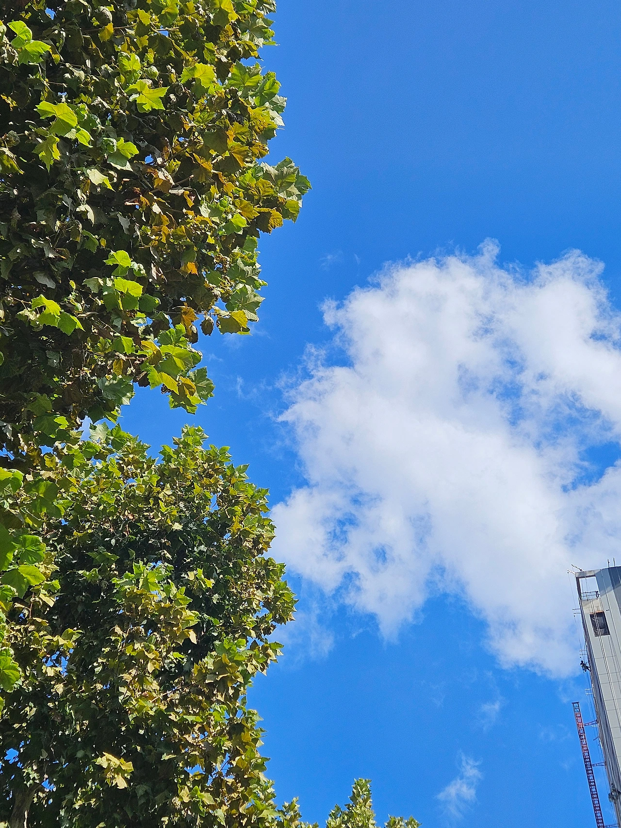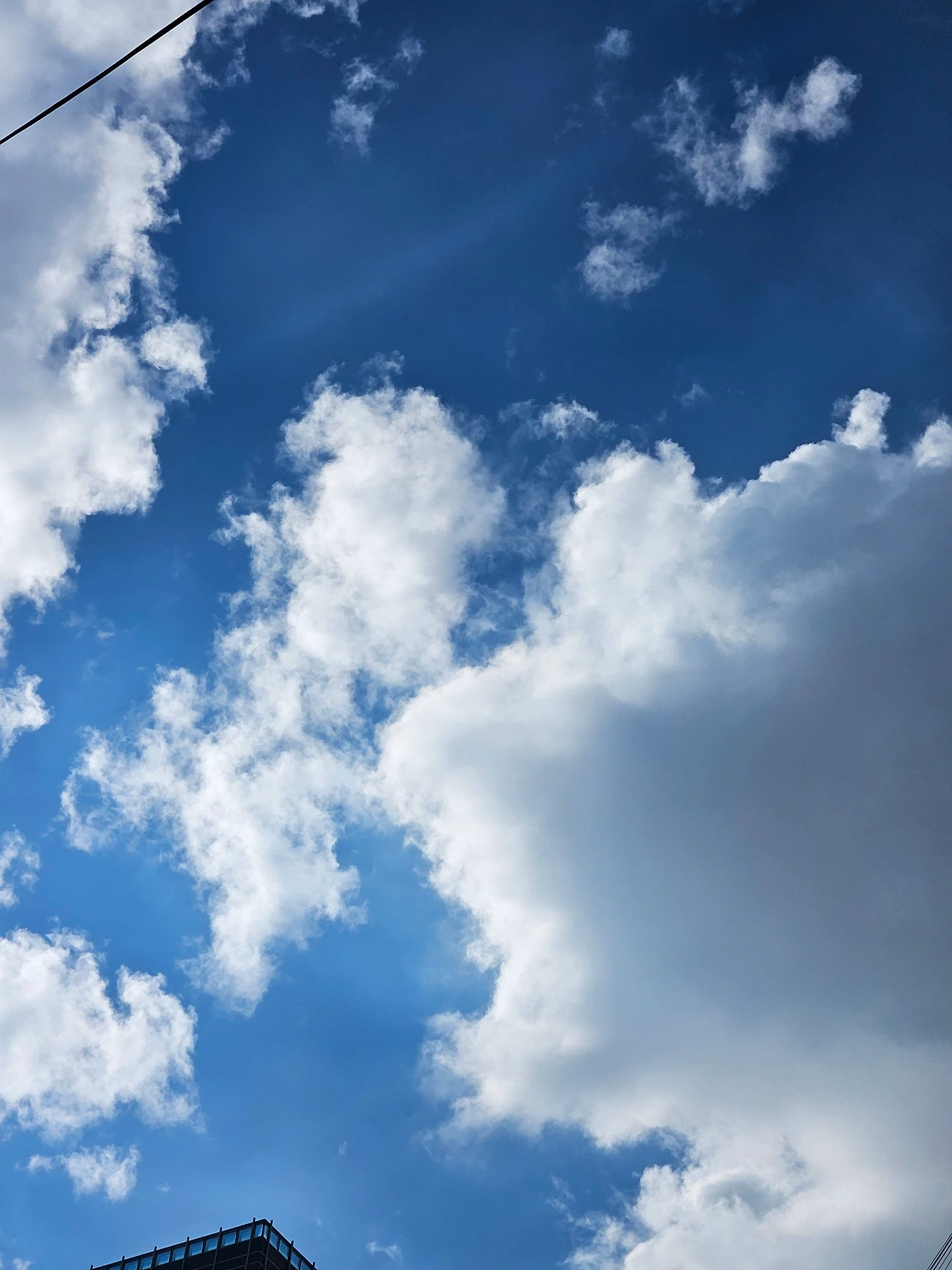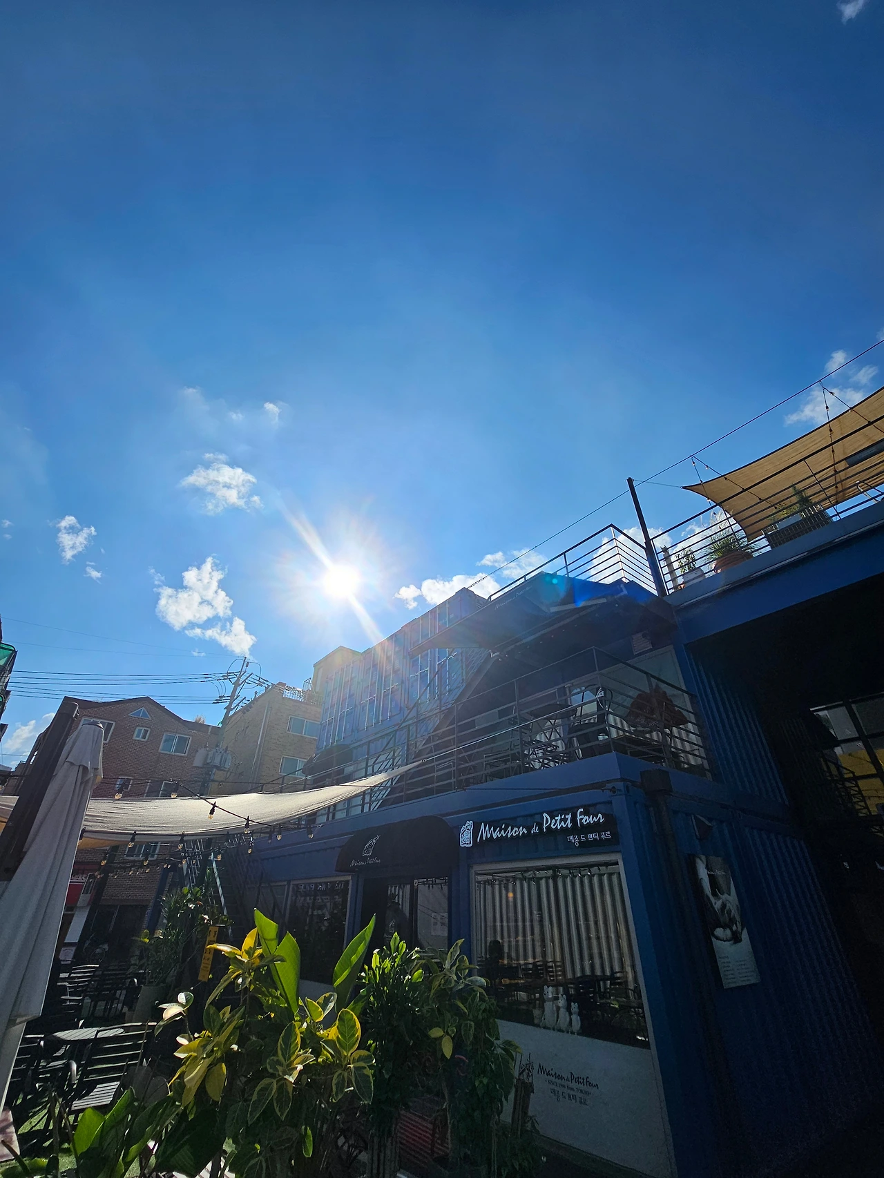 주중에 휴가를 내면 마음이 훨씬 더 여유롭고 풍요로워지는 기분이다. 그 탓일까? 하늘이 더 예뻐 보였다. 유리건물에 비친 구름이 선명하다.