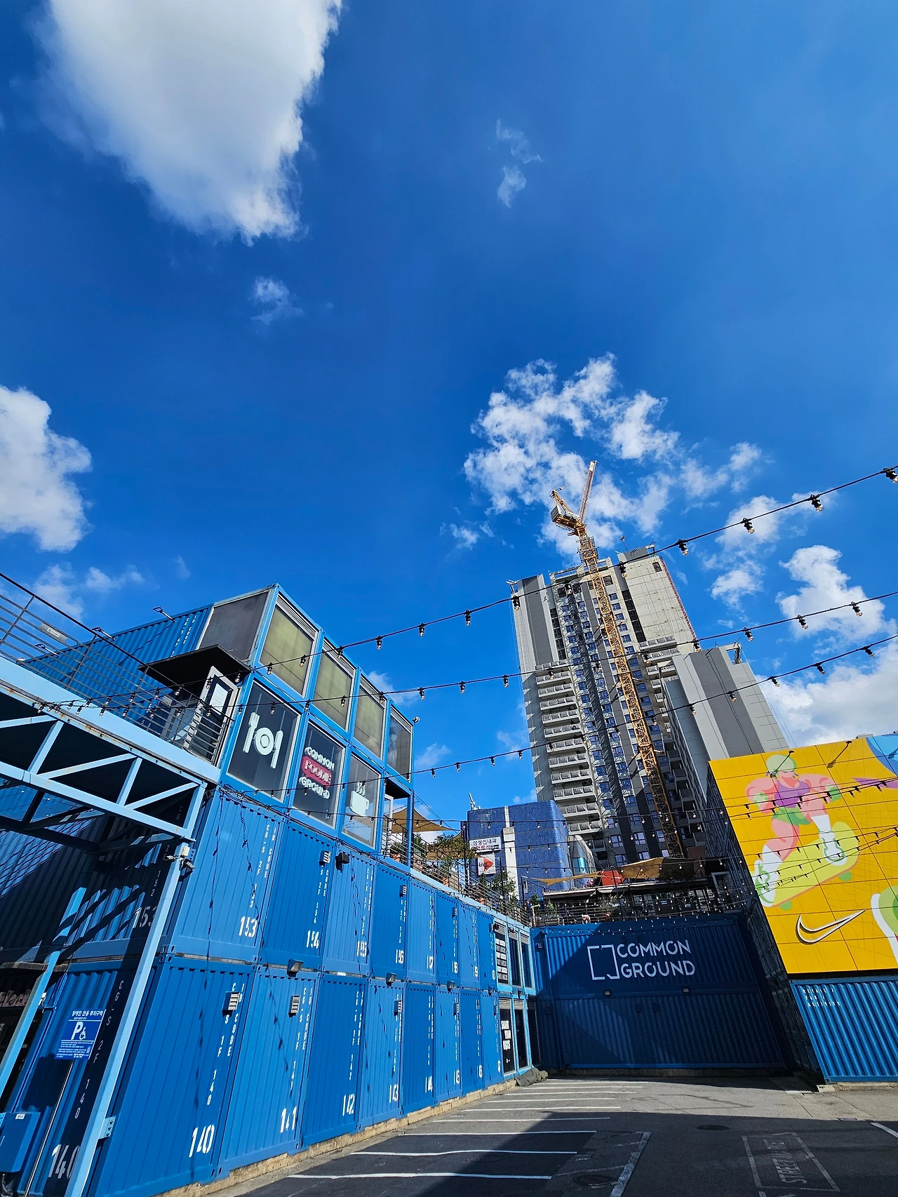 커먼그라운드 컨테이너의 파란색과 파란색 하늘(14:54)