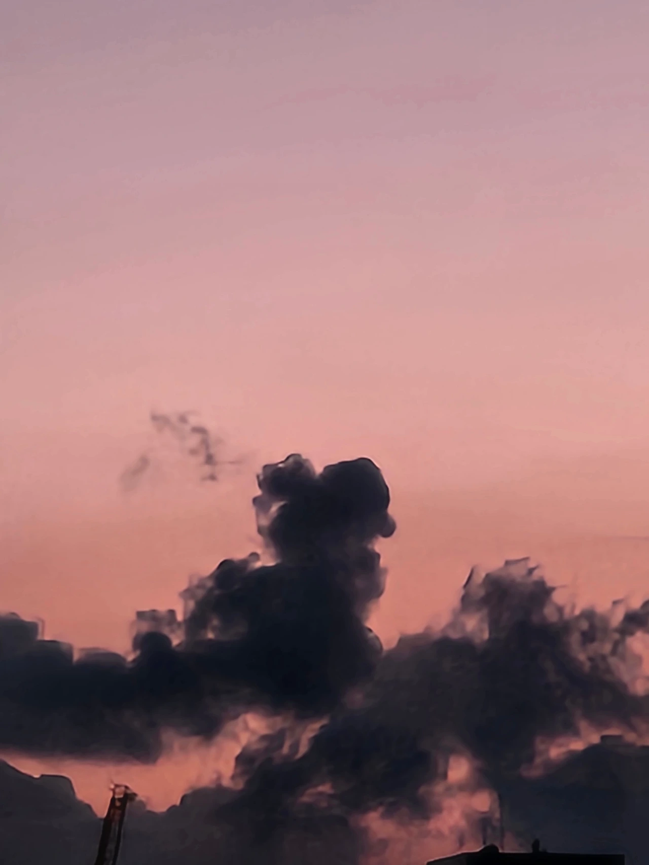 아래위가 대칭되는 느낌의 구름과 노을빛이 역광으로 비쳐 까맣게 보이는 구름. 검은 연기 같기도 하고 먹물을 풀어 그린 것 같기도 하다.