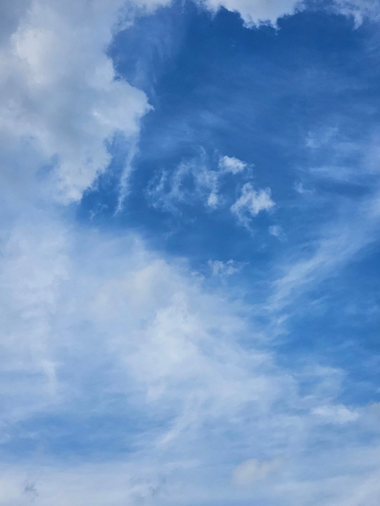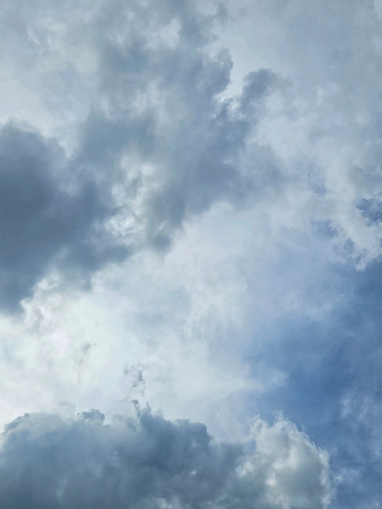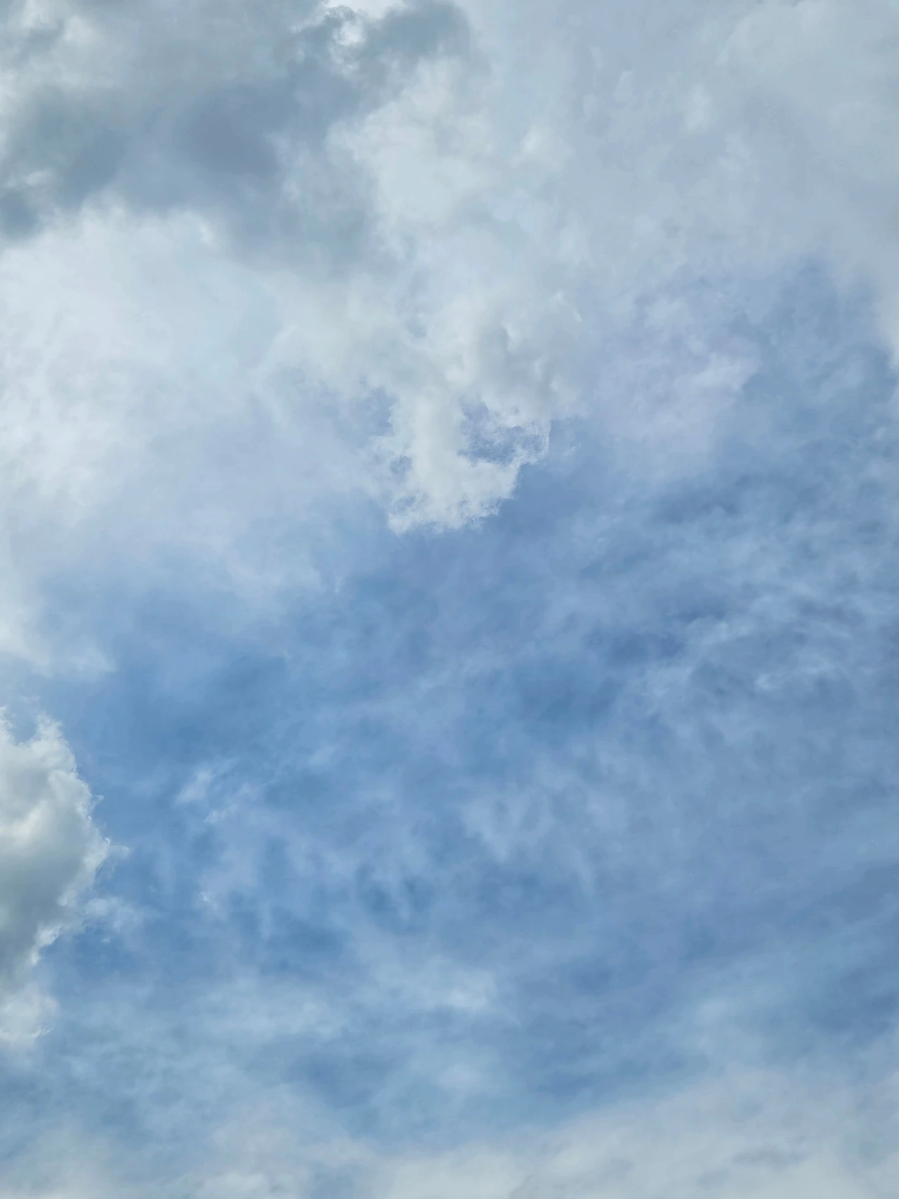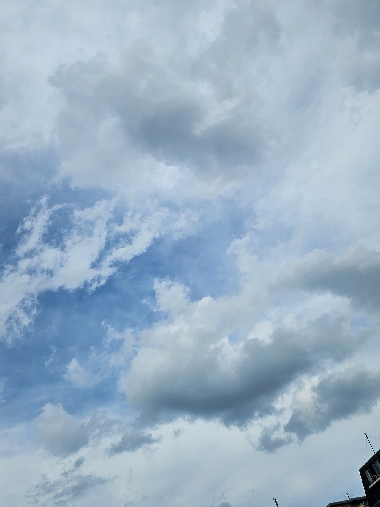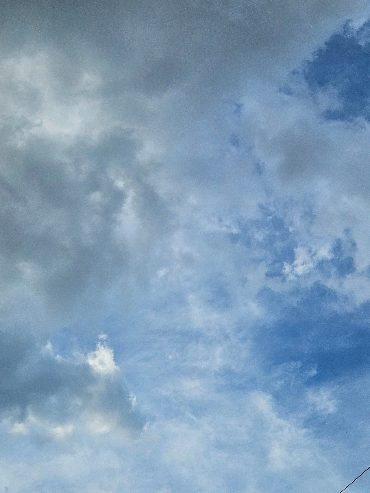 카디건을 잃어버린 줄도 모르고 하늘 사진을 열심히 찍었다. 왼쪽사진은 수채화 물감을 풀어놓은 것처럼 색이 옅다. 물이 많이 섞인 듯한 파란색이다. 가운데와 오른쪽 사진은 빛 때문에 구름층이 여러 겹 쌓여 있는 게 보인다.
