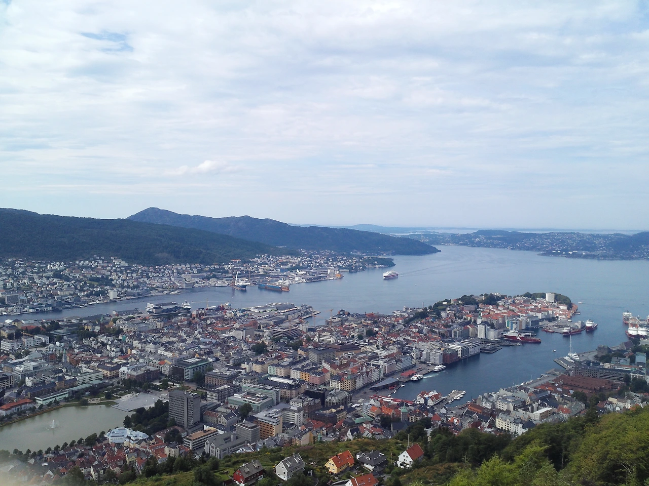베르겐 날씨는 햇빛은 따가우나 바람은 시원하다 못해 좀 차갑고 저녁에는 가디건과 머플러를 해야 할 정도였다. 갑자기 소나기가 쏟아지기도 하고. 한 낮은 더워서 웃통벗고 다니는 남자들이 많고.