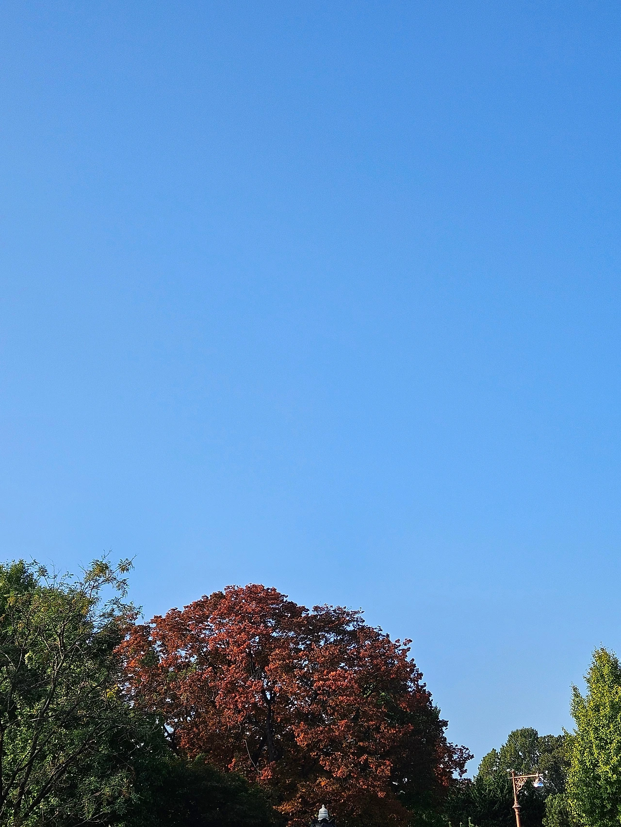 나무에 단풍이 들기 시작했다(08:36, 08:41)