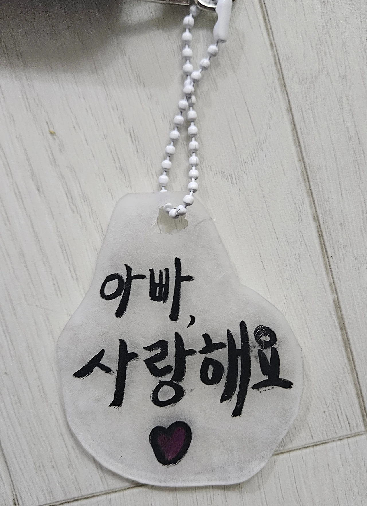 회사에서 힐링 프로그램으로 캘리그래피를 써서 열쇠고리 만드는 체험을 했다. 평소 하지 못했던 말이 떠올랐다. 얼굴 보고 직접 말하지 못하니 이렇게라도 전해야지 싶었다. 더 늦기 전에.