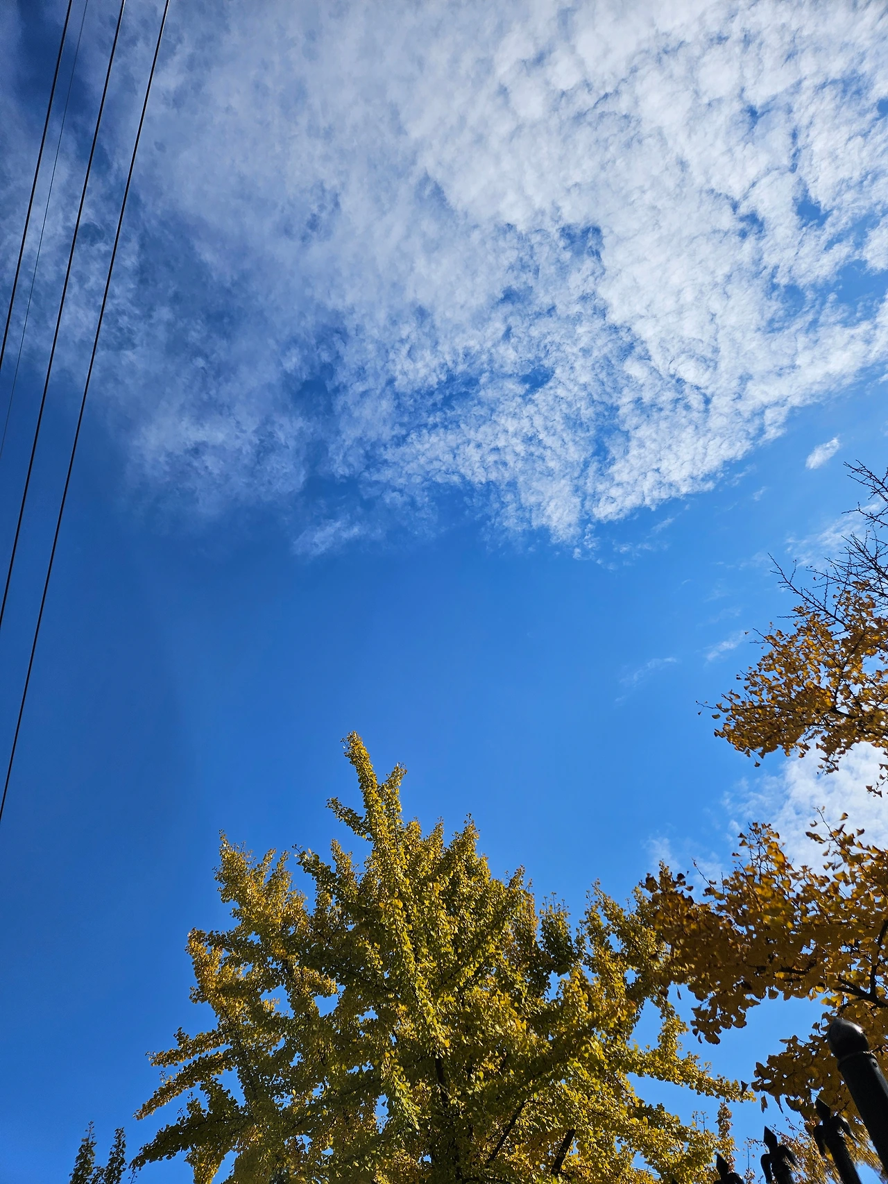 단풍 든 나무와 하늘색이 조화롭다. 산이 울긋불긋한 모습을 보노라면 그 속으로 걸어가 보고 싶다. 어제 안산 자락을 둘러보며 단풍을 봤는데 아직 온 산이 물든 건 아니어서 아쉬웠다. 한낮의 태양빛을 감춘 구름은 그 빛이 늘 오묘하다. 언제나 느끼는 거지만 빛이 사진과 휴대폰 화면을 뚫고 나올 듯 강렬하다. 조금만 오래 봐도 눈이 부셔 피하게 된다. 아마도 내 눈에 유리체가 녹아 없어졌기 때문일 거다. 노화현상 중 하나로 유리체가 떨어질 때 망막을 건드리지 않아 다행이라고 했다. 정말 그렇다. 덕분에 비문증이 더 심해졌지만 시력은 괜찮다.
