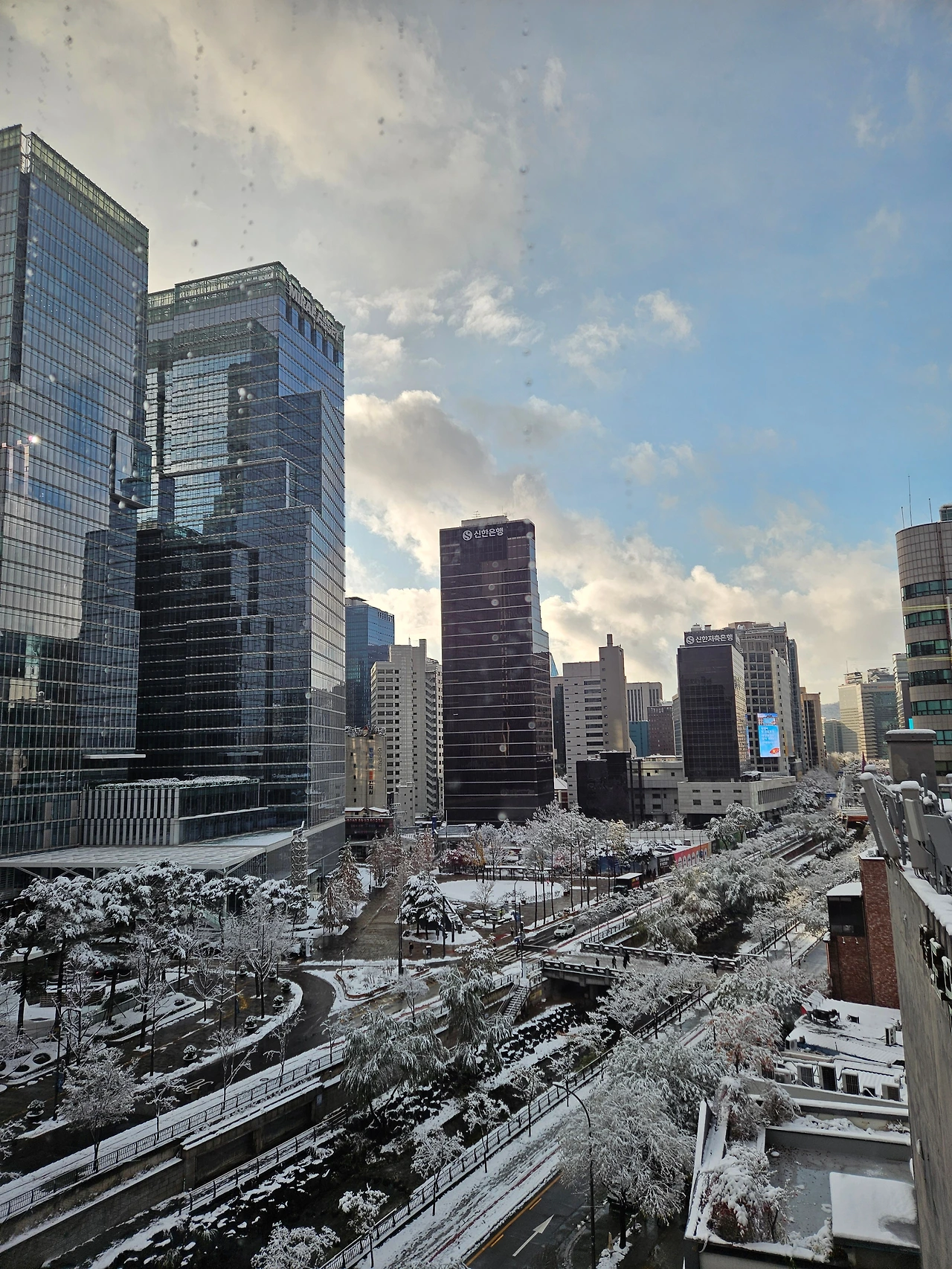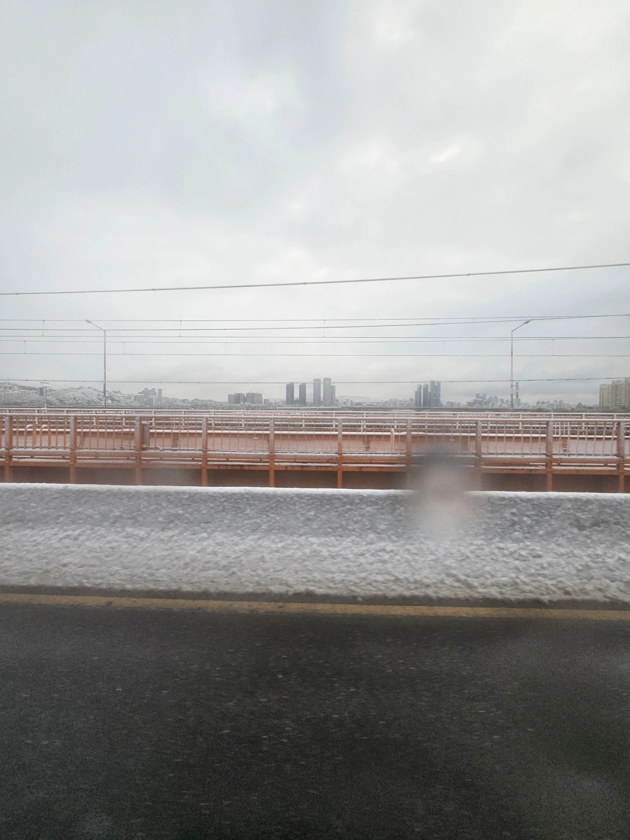 오전에 강남에 있는 타 기관의 채용 면접 심사를 가야 해서 평소 출근 시간보다 1시간 일찍 나섰다. 거리가 멀고 눈이 내려 행여나 교통체증이 있을까 봐 염려되었다. 다행히 집 앞 버스 정류장에서 한 번에 가는 버스가 있다. 좀 돌아가지만 전철 갈아타는 것보다 낫다. 동호대교를 건널 때 눈 내린 한강이 멋있어서 사진을 마구 찍었지만 건질만한 사진이 없어 아쉬웠다. 면접장에 도착해야 할 시간보다 10분 일찍 도착했다.