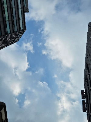 점심시간, 김밥을 사러 나갔다가 하늘을 봤다. 흰 구름 사이파란색이 보였다. 여백의 미가 느껴지는 숨 쉴 틈이 보여 좋았다. 매일 하늘을 보며 아름다움을 느낄 수 있는, 이렇게 잘 살면 될 일이다.
