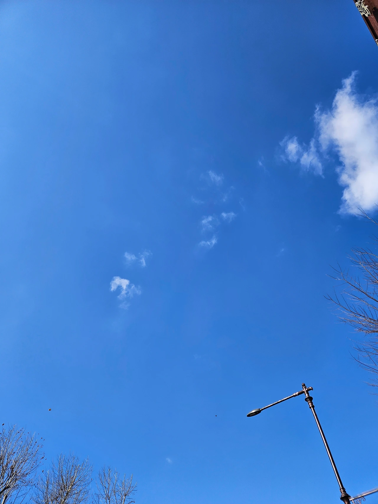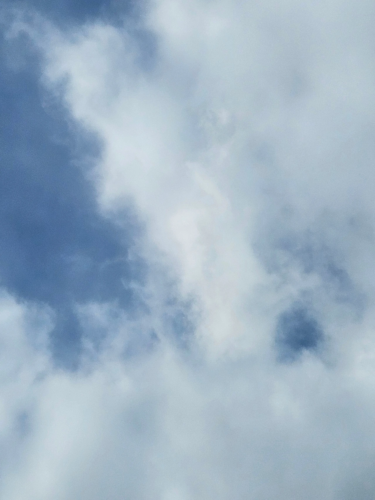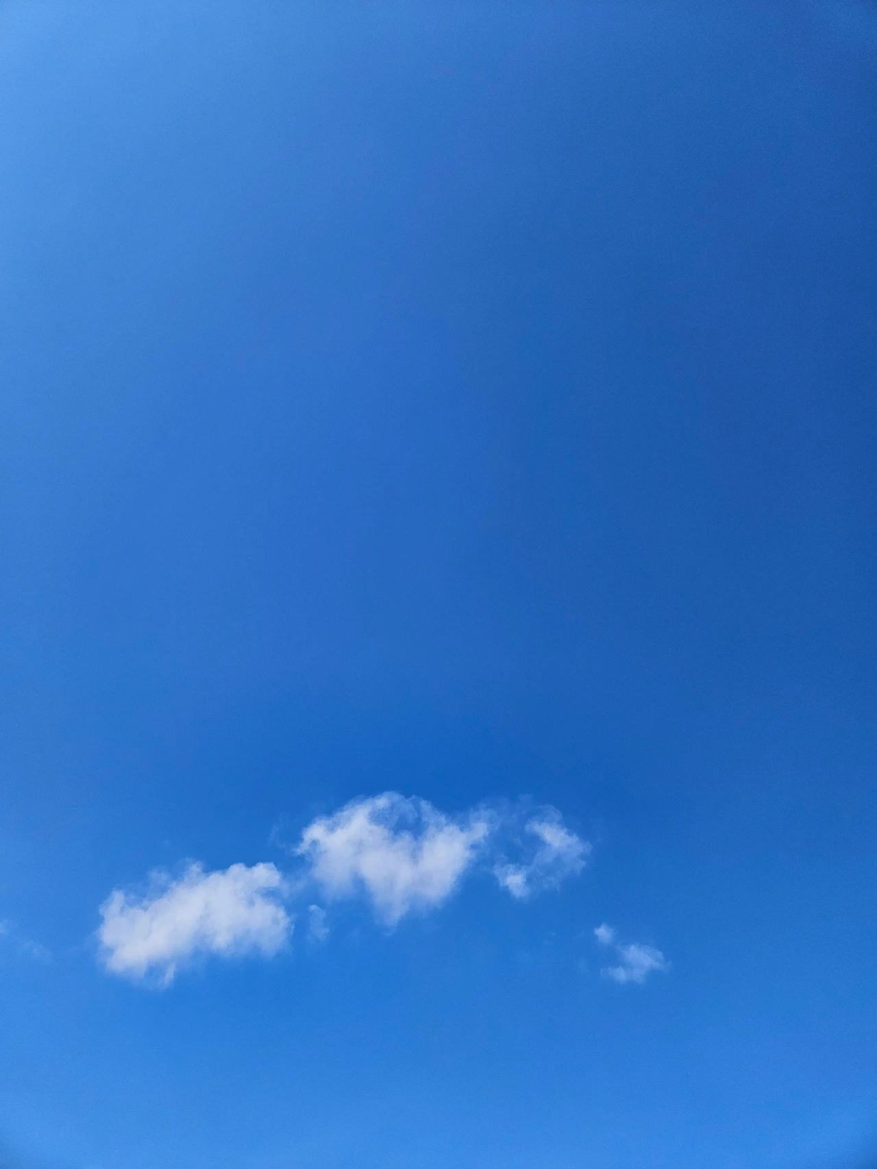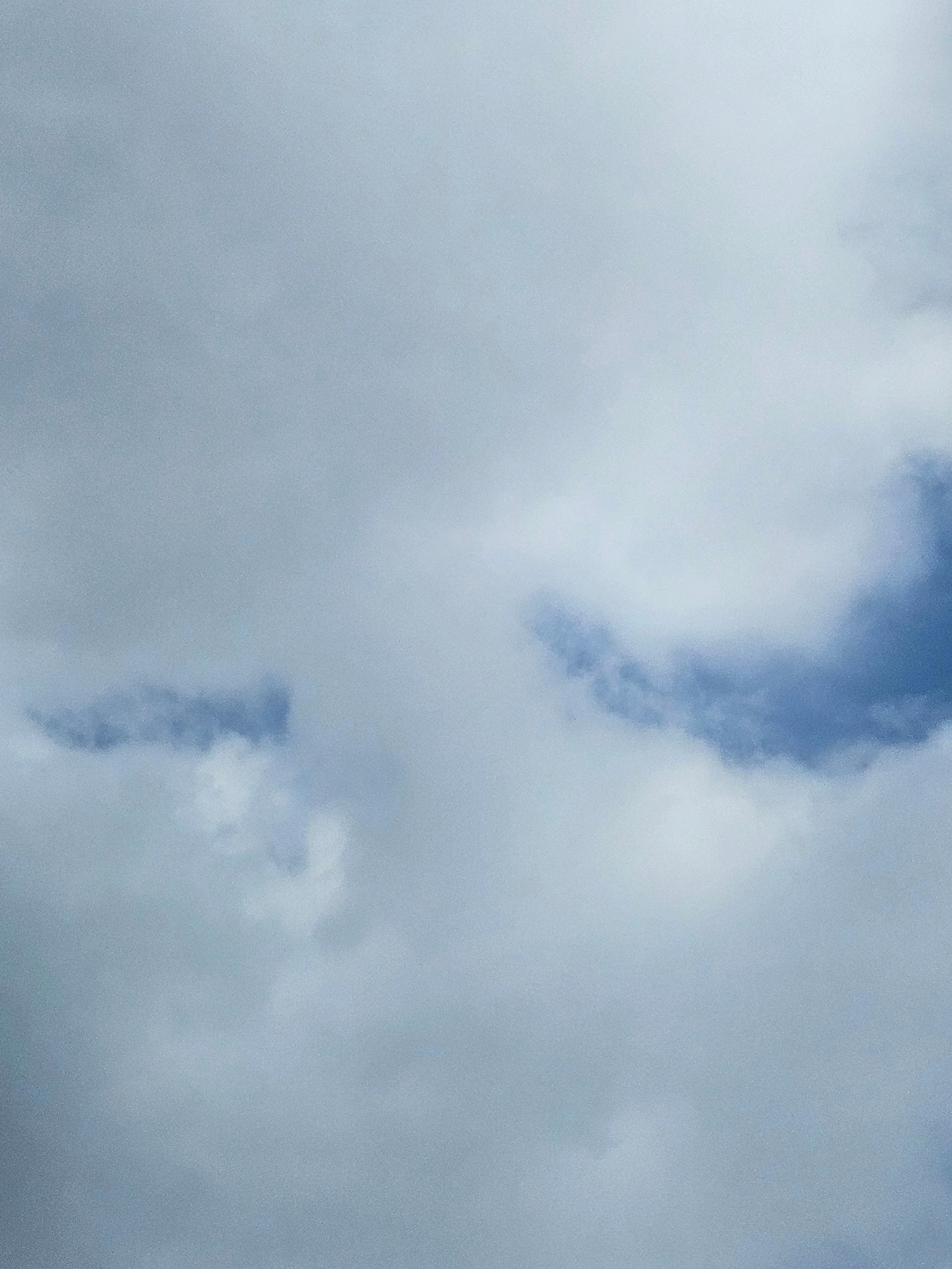 오랜만에 구름에서 의미 있는 모양을 찾아냈다. 두 눈을 감은 모습. 아주 작은 파란 틈이 눈썹처럼 보였다. 재택으로 일하며 부모님 식사를 챙기고 설거지와 음식을 하는 사이 이렇게 잠깐 하늘을 보는 시간을 가질 수 있음에 감사한다.