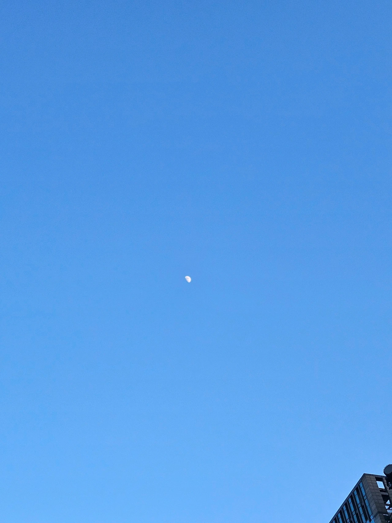 아침에 본 하늘은 희망차고 멋있었다. 저녁엔 그저 달을 보며 마음을 다스린다. (08:34, 08:42, 17:05)