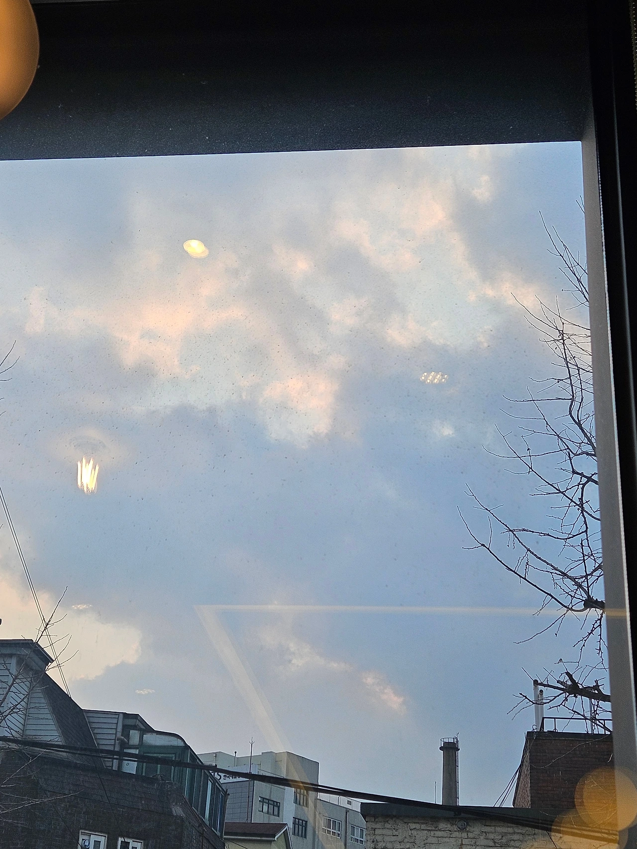 아래 왼쪽 사진은 지네처럼 다리 많은 벌레 같다. 가운데 사진에는 툭 튀어나온 두 눈에 뿅망치 같은 입술을 한 장난감이 보인다. 오른쪽 사진은 카페에서 찍은 사진인데 조명이 반사되어 맨 위 불빛이 마치 태양처럼 보인다.