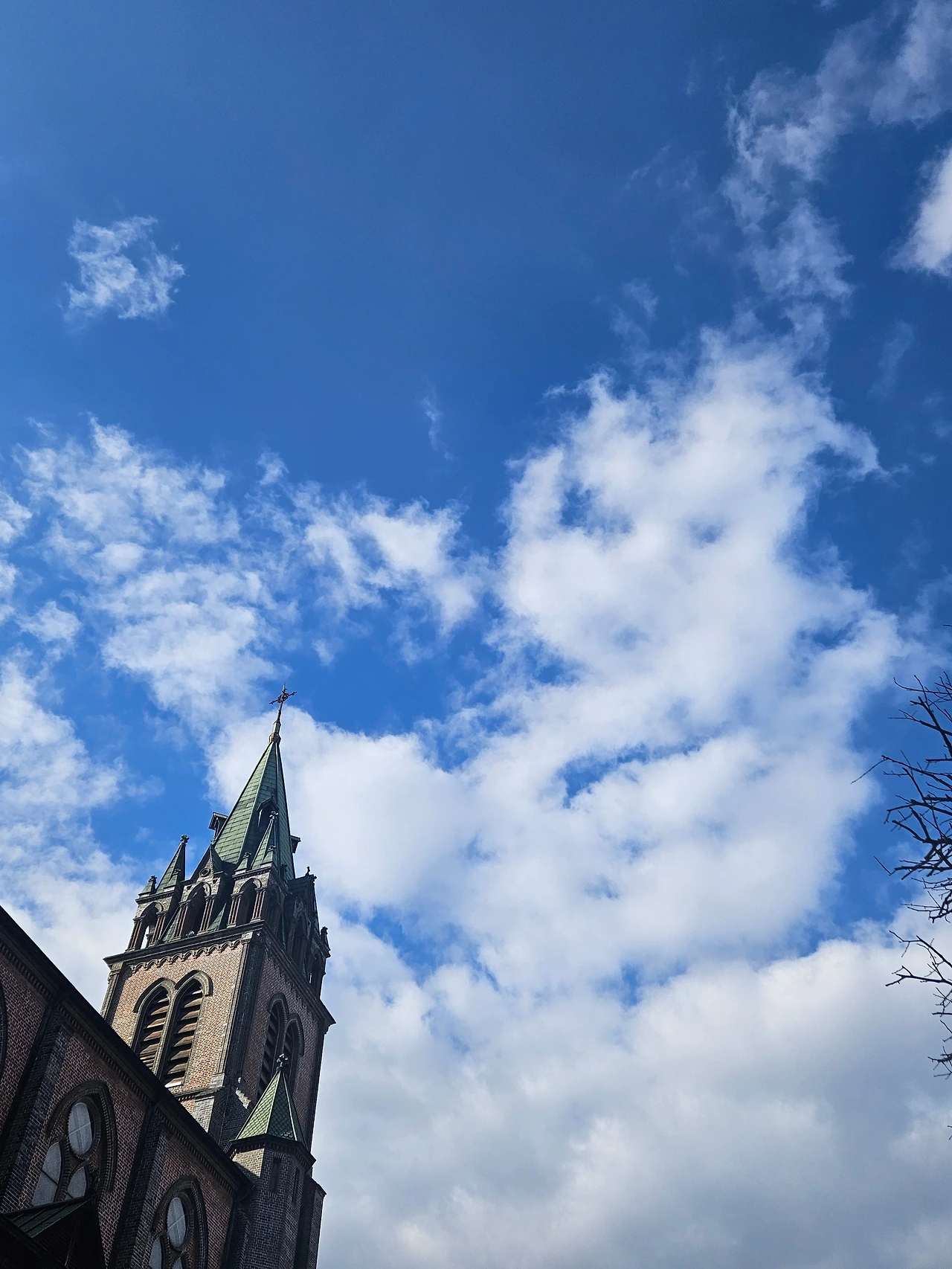 외국여행을 패키지로 가면 대개 그 도시의 유명한 성당이 투어 일정에 포함되어 있다. 프랑스 파리의 노트르담 성당, 호주 시드니의 세인트 메리 성당, 캐나다 몬트리올 성요셉 성당, 미국 뉴욕 성패트릭 성당 등. 천주교 신자가 아니어도 건축물 자체가 볼만하기에 많은 관광객들이 방문하는 명소다. 우리나라에는 명동 성당이 있다. 오롯이 나 혼자만의 시간을 갖기 위해 명동성당을 산책했다. 마침 그곳에서 결혼식이 열리고 있었다. 하객들이 북적대는 가운데 외국인 관광객들이 사진 찍느라 여념이 없었다. 명동에 가면 다양한 국가에서 온 관광객들을 보게 되는데 그중 명동성당을 배경으로 사진 찍는 관광객이 무척 많다. 나도 관광객처럼 성당과 하늘 사진을 열심히 찍었다. 성당 뒤편 마당에는 벤치에 삼삼오오 앉아 한가로이 담소를 나누는 사람들이 있고 성모 마리아 동상 앞에서 기도를 올리는 사람도 있었다.