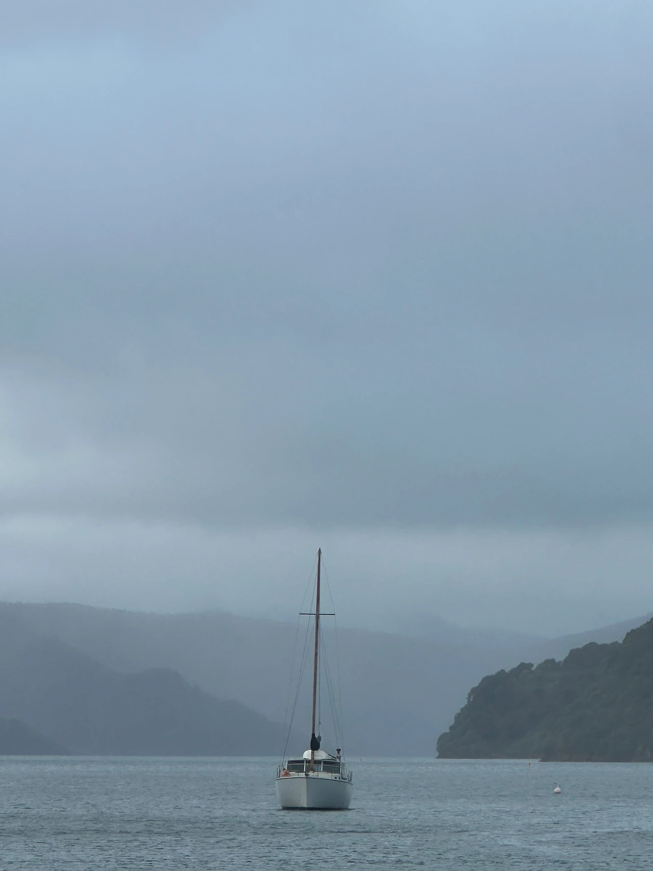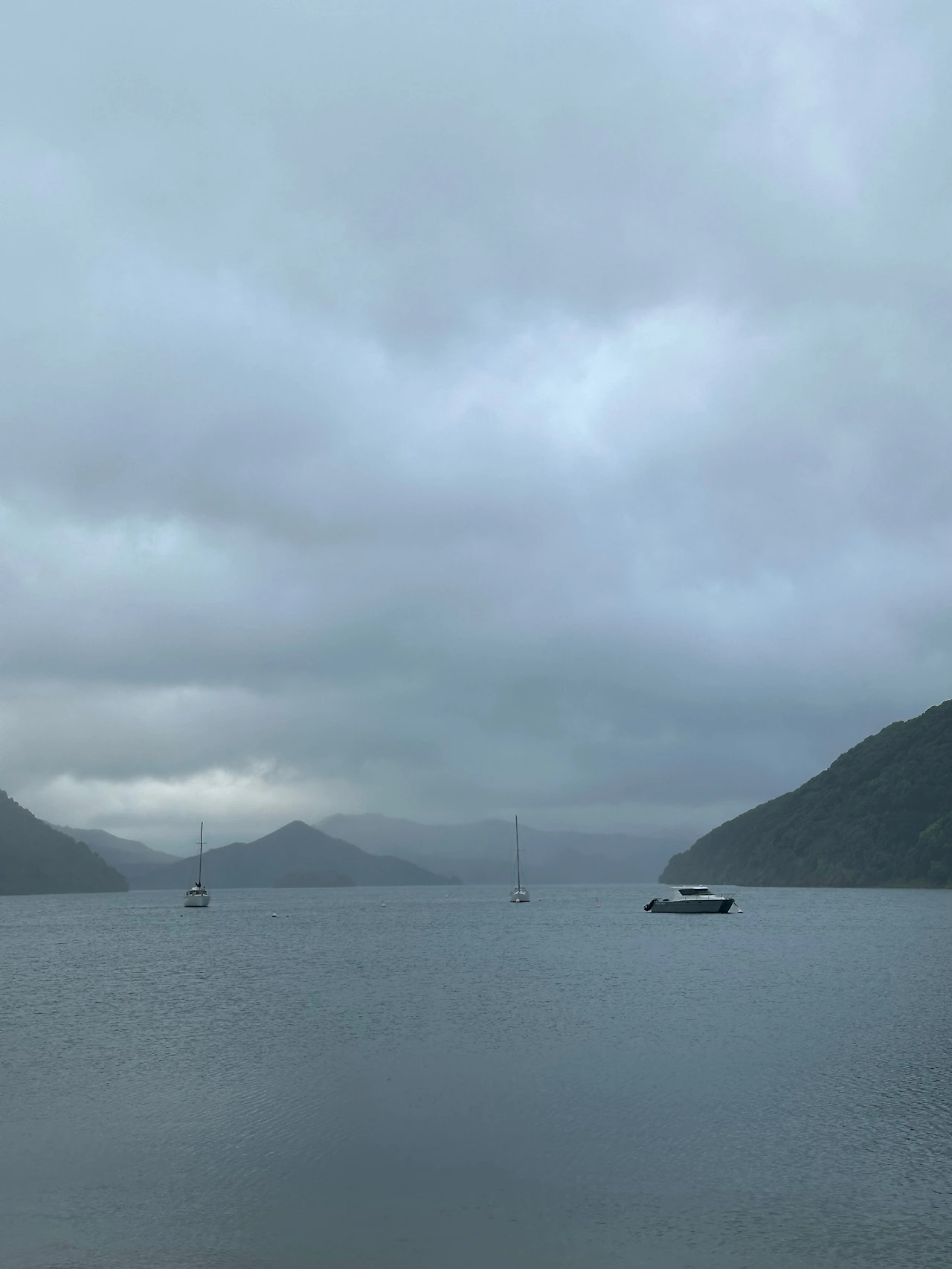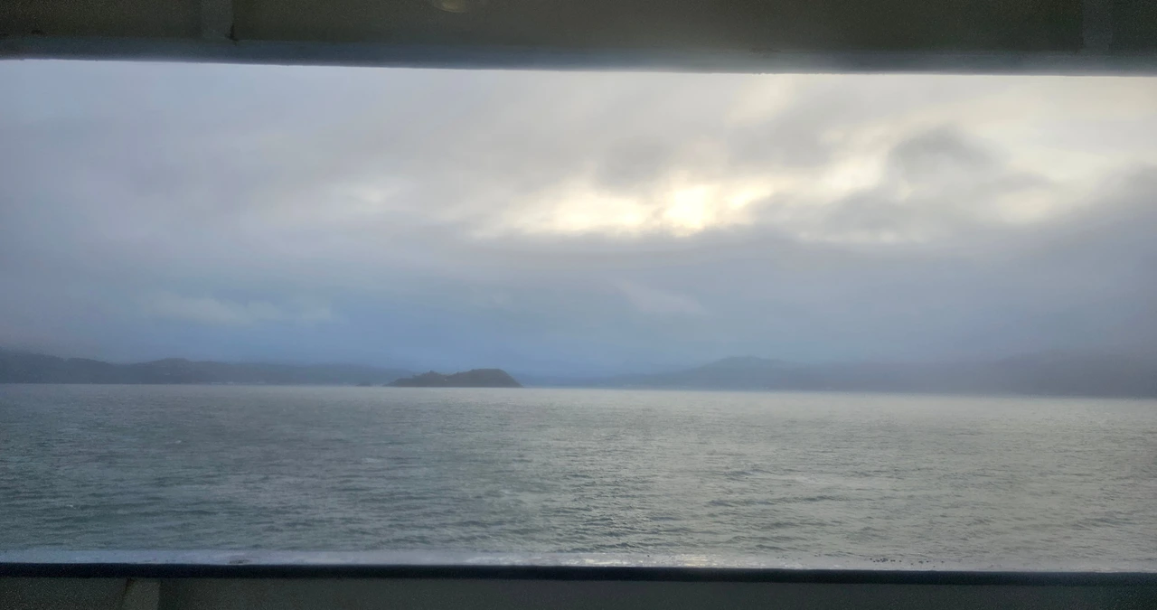 배에 올라 항구를 둘러봤다. 엇? 그런데 우리가 타기로 했던 배는 옆에 서 있다. 우리가 탄 배는 다른 이름의 배였다. 제대로 맞게 탄 건지 불현듯 걱정되어 리셉션에 있는 직원에게 물었더니 그 배는 문제가 생겨 아침에 배편이 바뀌었다고 알려준다. 웰링턴에서 픽턴까지 배를 타고 가기로 한 이유 중 하나는 말보로 사운드(Marlborough Sound)와 샬롯 사운드(Charlotte Sound)를 지나간다고 되어 있어서다. 뉴질랜드는 피요르드 해안이 많은데 빙하기 이후 홍수로 인해 만들어진 계곡 사이로 흐르는 바다가 절경이다. 그런데 비가 내리는 바람에 사방이 잘 보이지 않는다. 갑판에 나갈 수도 없어 자리에서만 몇 컷 찍었다. 아침으로 싸 온 사과, 키위, 바나나, 삶은 감자와 단백질 바를 먹고 좀 앉아 있자니 졸음이 몰려왔다. 간 밤에 잠이 오지 않아 뒤척이다가 3시간도 못 자고 일어난 탓이 큰 것 같다.