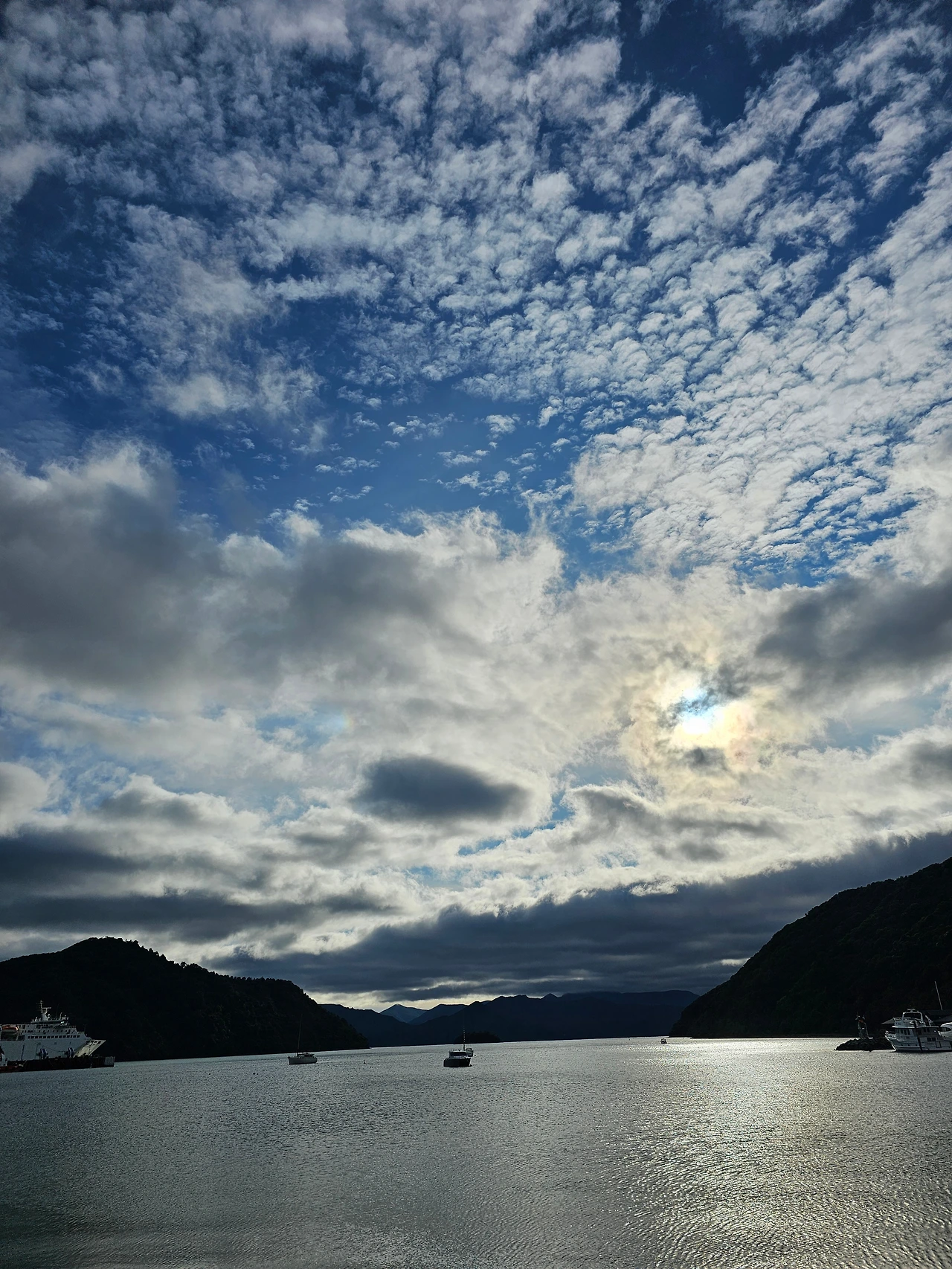 페리 출발 시간까지 식당에서 머물다 천천히 걸어서 터미널로 이동했다. 비가 갠 직후라 날이 맑고 걷기에 적당했다. 아침 10시에 체크아웃하여 픽턴 항구 주변을 둘러봤는데 인터아일랜더 정박장이 더 가까웠다. 블루브리지 페리보다 좀 더 웅장해 보였지만 아쉬운 마음은 들지 않았다. 맛있는 음식을 배불리 먹은 덕분이다. 웰링턴으로 돌아오는 배는 픽턴으로 갔던 배와 다른 배다. 애초 우리가 탔어야 했던 "connemara"호였다. 화물선 갔던 "strait feronia"호에 비하면 여객선다웠다. 도보 탑승객을 위한 통로가 좀 더 깔끔했다. 에스컬레이터도 있다. 대합실은 더 넓고 좌석도 훨씬 많았다. 어떤 사람은 이미 누워서 자리를 차지했는데, 우리나라였다면 눈총 받을 일인데 아무도 신경 쓰지 않는 것 같았다. 비가 오지 않았기에 우리는 갑판으로 나가 고요하고 아름다운 작고 큰 섬들을 봤다. 날씨가 좋으면 돌고래와 각종 바다 생물을 볼 수 있다는데 눈에 띄지 않았다. 대합실과 연결된 갑판에는 윗 갑판으로 올라갈 수 있는 계단이 있는데, 경치를 보러 올라가긴 했지만 고소공포증과 불안증이 있는 나는 잘못해서 바다에 빠질까 봐 난간을 두 손으로 부여잡고 한 걸음씩 심호흡을 하며 천천히 올라갔다. 경치는 말할 필요도 없이 장관이었다.