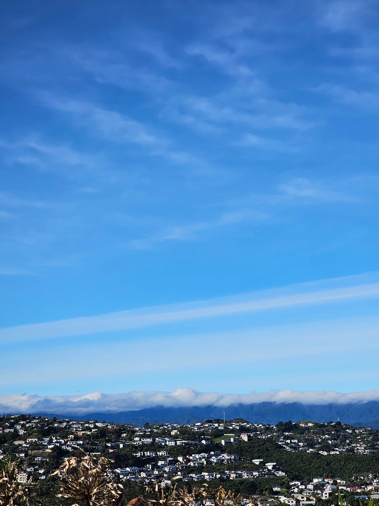 뉴질랜드는 마오리어로 "아오테아로아"라고 부른다. '길고 흰 구름의 나라'라는 뜻이다. 그 말처럼 정말 길고 흰 구름이 산 위에 걸쳐 있다. 그 위로 기다랗고 얇은 구름이 장막을 씌우듯 아주 길게 늘어섰다. 사진으로는 그 멋진 모습을 다 담을 수 없는 게 아쉽다.