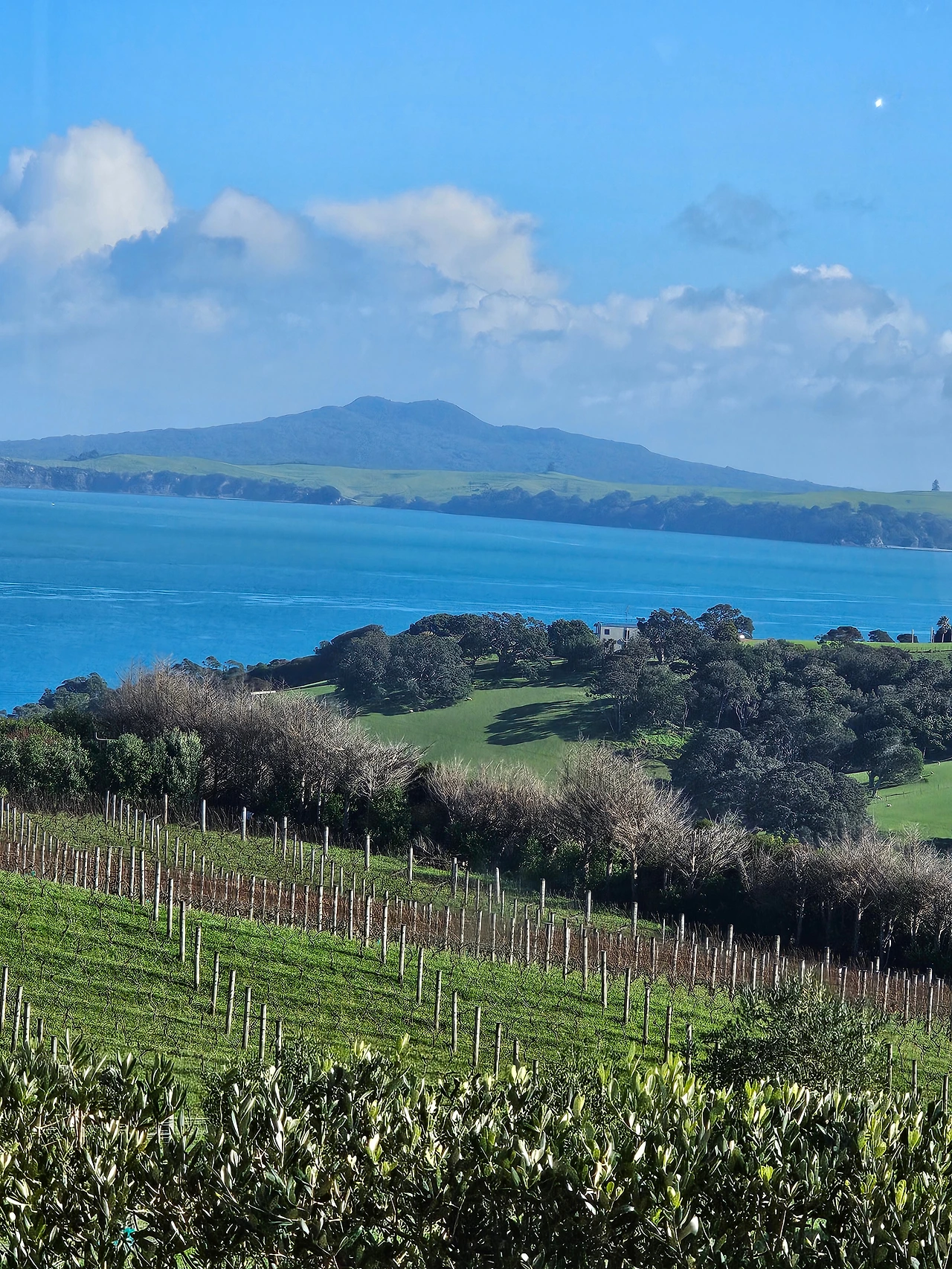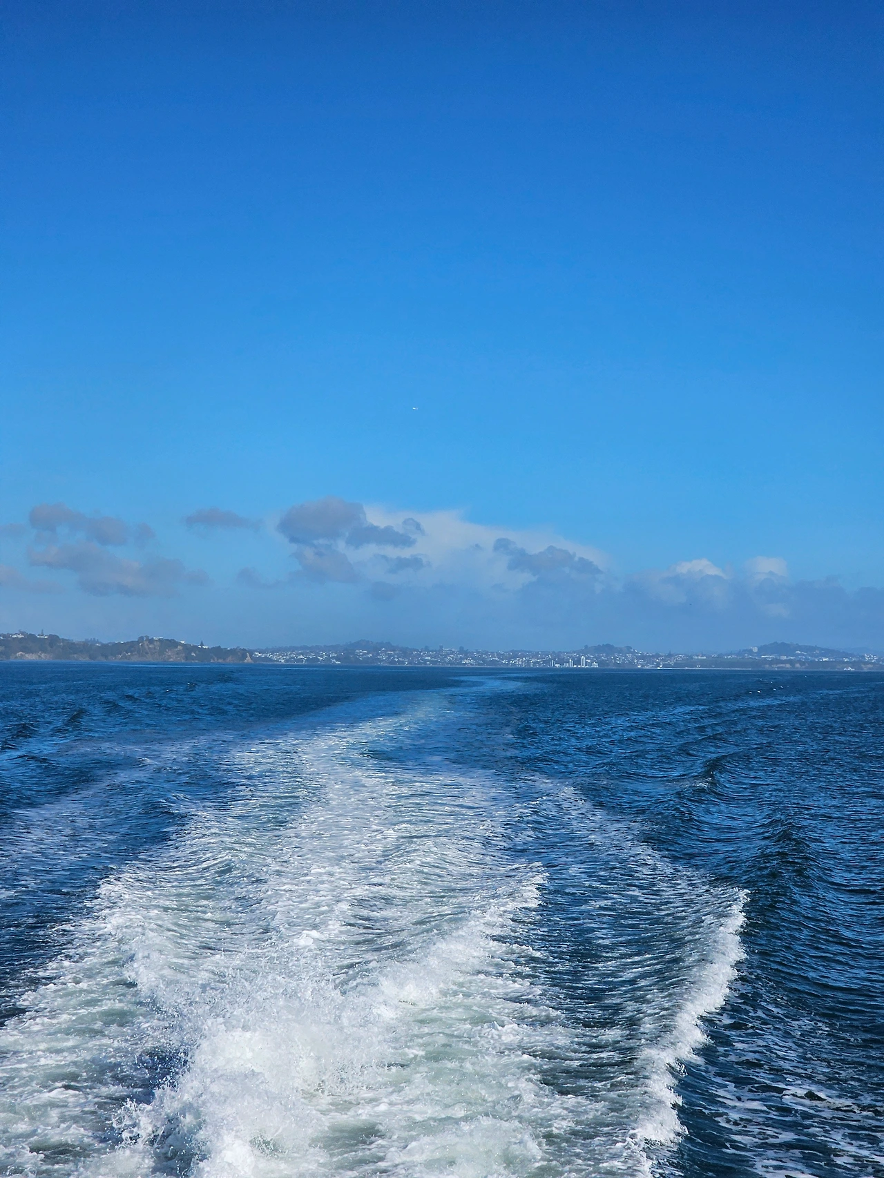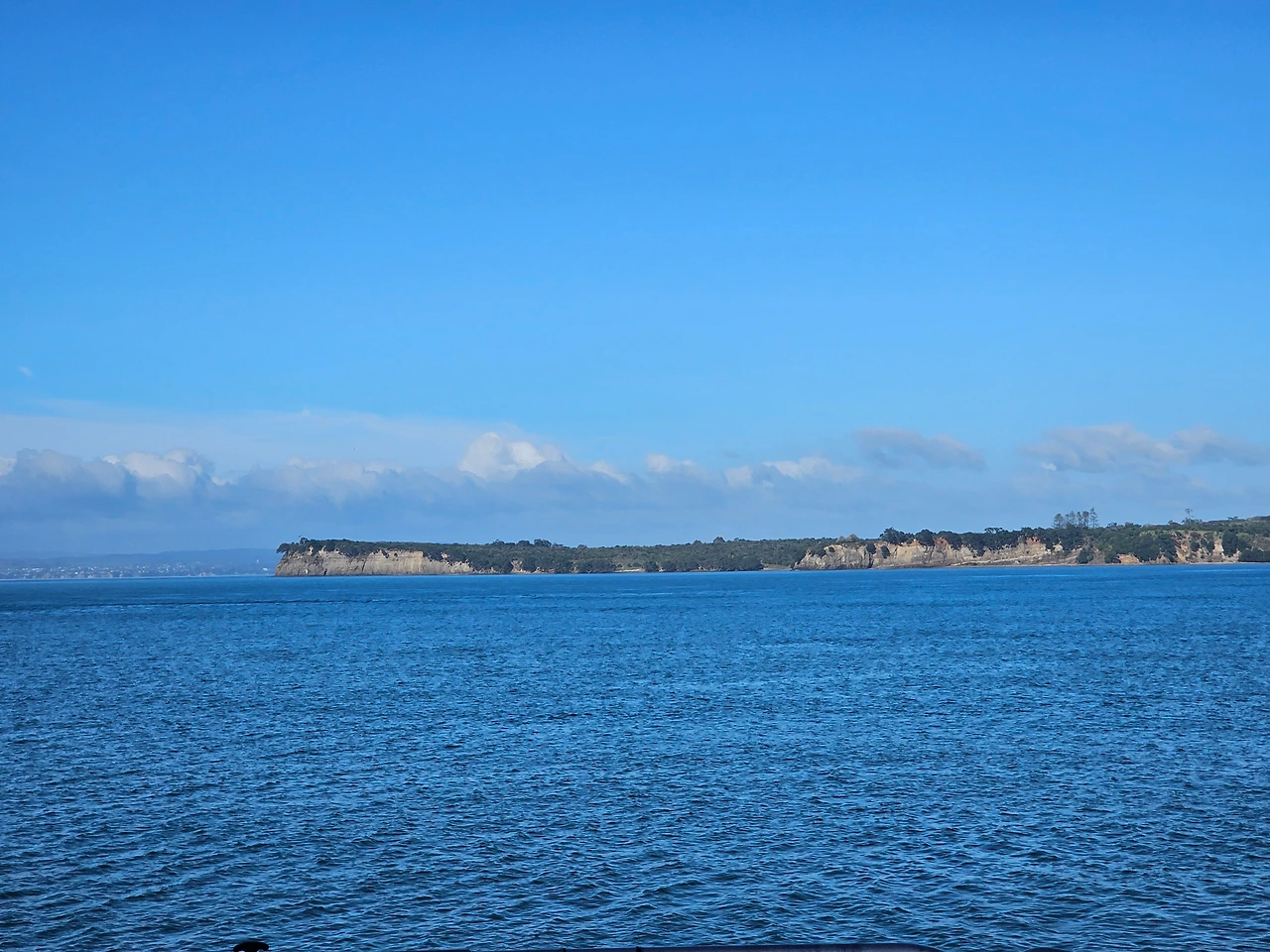 뉴질랜드에서 와인 생산지로 제일 유명한 곳은 말보로(Marlborough) 지역이지만, 북섬에서는 와이헤케섬(Waiheke Island)이 그중 하나다. 지난 금요일로 예약했던 투어를 오늘로 바꿨다. 일기예보에 월요일은 비가 오지 않는다고 했기 때문이다. 일기예보대로 비가 오지 않아 페리 타고 떠나기에 아주 적합한 날씨였다. 오클랜드 부두에서 출발할 때는 날이 좀 흐렸지만 와이헤케섬으로 갈수록 햇빛이 쨍하고 하늘은 짙고 푸르렀다. 우리는 페리 왕복 요금과 와이너리를 포함, 섬의 주요 관광지를 도는 버스 투어(hop on, hop off)를 예약했다. 와인시음은 블레넘(Blenheim)에서 충분히 했으므로 이곳에서는 경치 좋은 와이너리에서 식사하고 시간이 된다면 와인시음을 하기로 했다. 버스는 총 15군데에 정차하는데 매 1시간마다 다니므로 물리적으로 하루에 15곳을 모두 다 내려서 볼 수 없다. 게다가 마지막 버스는 5시에 끝난다. 우리는 더구나 오전 11시 페리(지연되어 11시 20분에 탔다)를 탔기에 섬에 머물 수 있는 시간이 많지 않다. 오클랜드에서 와이헤케 섬까지 배로 45분 정도 걸린다.