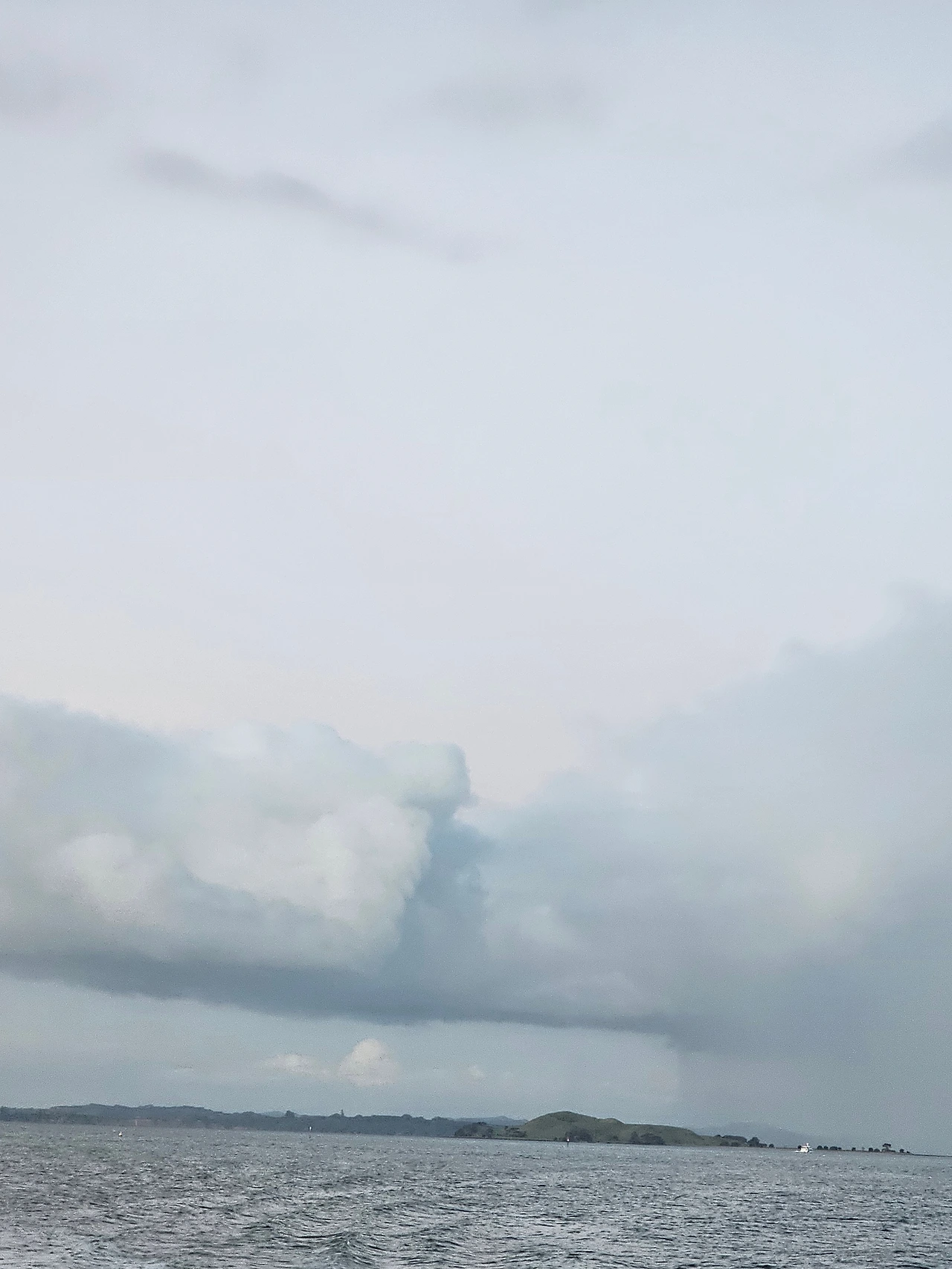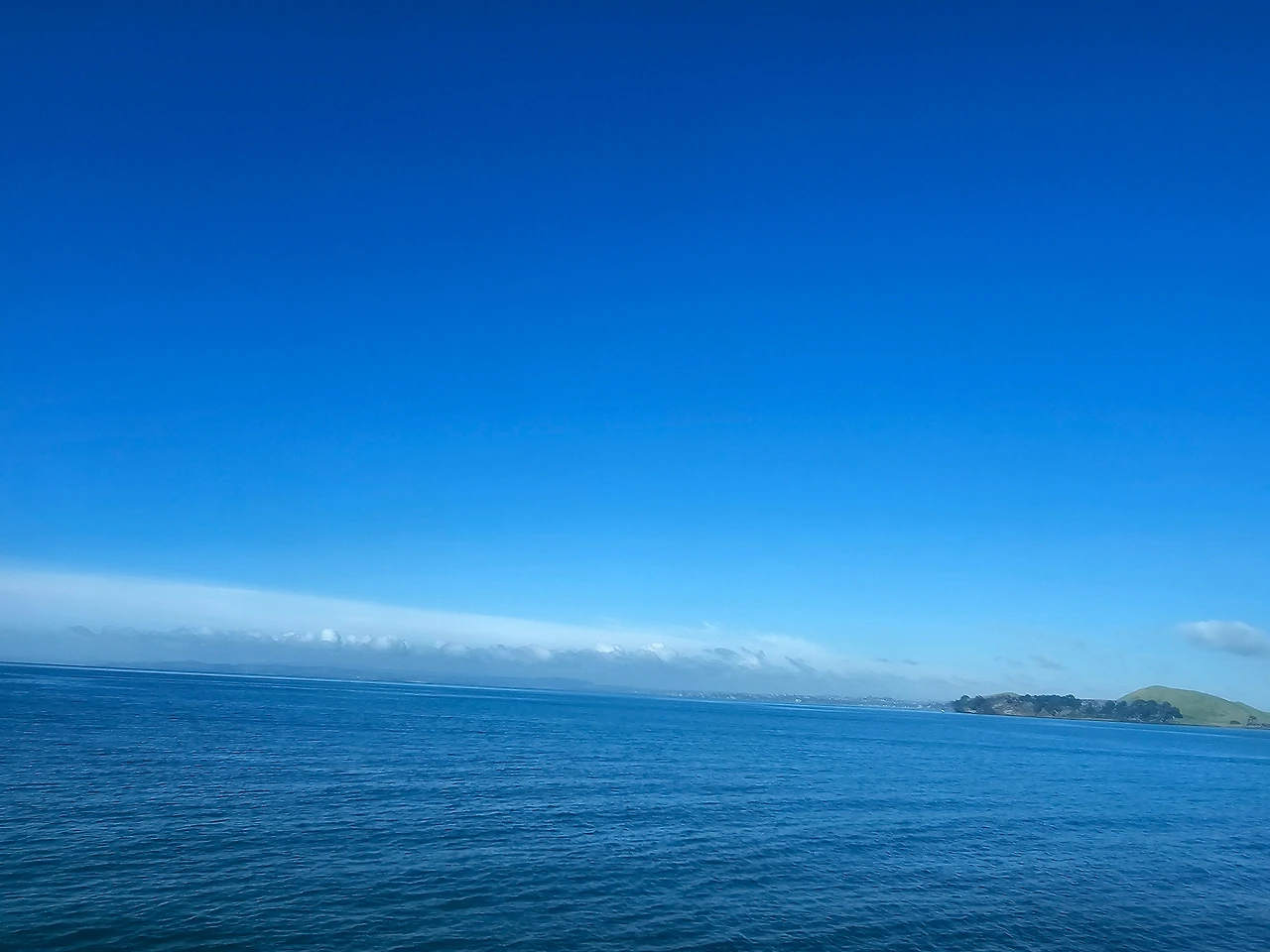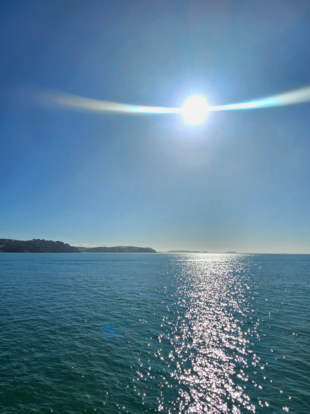 뉴질랜드에서 와인 생산지로 제일 유명한 곳은 말보로(Marlborough) 지역이지만, 북섬에서는 와이헤케섬(Waiheke Island)이 그중 하나다. 지난 금요일로 예약했던 투어를 오늘로 바꿨다. 일기예보에 월요일은 비가 오지 않는다고 했기 때문이다. 일기예보대로 비가 오지 않아 페리 타고 떠나기에 아주 적합한 날씨였다. 오클랜드 부두에서 출발할 때는 날이 좀 흐렸지만 와이헤케섬으로 갈수록 햇빛이 쨍하고 하늘은 짙고 푸르렀다. 우리는 페리 왕복 요금과 와이너리를 포함, 섬의 주요 관광지를 도는 버스 투어(hop on, hop off)를 예약했다. 와인시음은 블레넘(Blenheim)에서 충분히 했으므로 이곳에서는 경치 좋은 와이너리에서 식사하고 시간이 된다면 와인시음을 하기로 했다. 버스는 총 15군데에 정차하는데 매 1시간마다 다니므로 물리적으로 하루에 15곳을 모두 다 내려서 볼 수 없다. 게다가 마지막 버스는 5시에 끝난다. 우리는 더구나 오전 11시 페리(지연되어 11시 20분에 탔다)를 탔기에 섬에 머물 수 있는 시간이 많지 않다. 오클랜드에서 와이헤케 섬까지 배로 45분 정도 걸린다.
