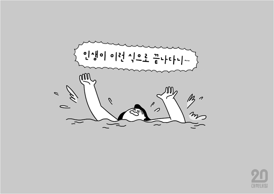 결국 물에 들어간 지 10분도 되지 않아 일이 터졌다. 들어가 보니 친구들 말 대로 얕은 바다라 슬슬 걷고 있었는데, 갑자기 물이 깊어지는 구간이 나왔고, 바닥에 발이 닿지 않자 놀란 나는 물속으로 꼬르륵 가라앉고 말았다. 너무 당황하니 살려달라는 소리도 나오지 않더라. 저 멀리서 수영하던 친구가 뒤늦게 날 발견하고 건져줬으니 망정이지 하마터면 정말 큰일 날 뻔했다.
