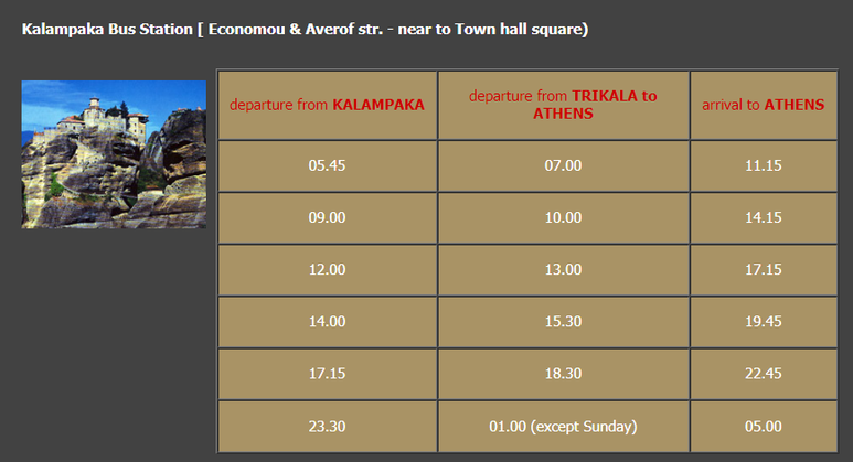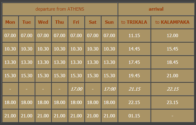 사이트 들어가기 귀찮은 사람들을 위해, 아래는 아테네-칼람바카(메테오라) 버스 시간표