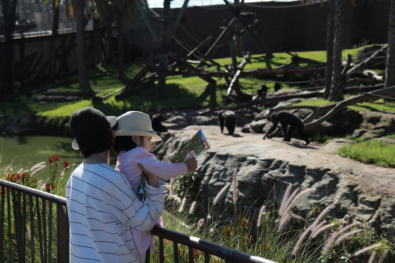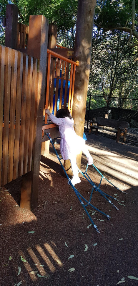 정상에 도착하고 두 딸의 기념사진을 찍고 본격적인 관람을 시작하면서 이 여행이 언니 위주의 여행임을 알았기 때문이었을까, 유모차에 타고 있던 둘째는 또다시 잠이 들었다. 한국에서는 거의 볼 수 없었던 코알라부터 캥거루, 기린, 코끼리 등등 여러 동물들을 구경했다. 하지만 큰 아이는 동물보다도 놀이터를 더 좋아했다. 이동 중에 만나는 놀이터마다 한참씩을 놀며 지나가야 했다. 블로그 후기들을 통해서 중간중간 놀이터가 있다는 사실을 알고 첫째를 위해 잘됐다고 생각을 했으나 시간을 너무 많이 뺏겨 동물원에 온 주목적을 상실하는 것 같아 걱정이 됐다.