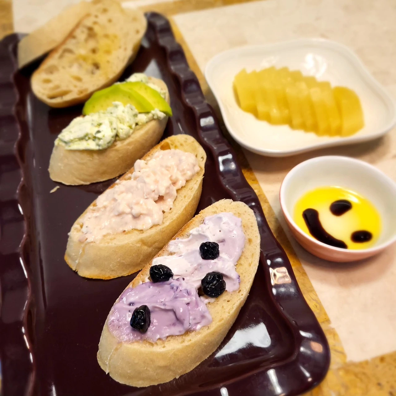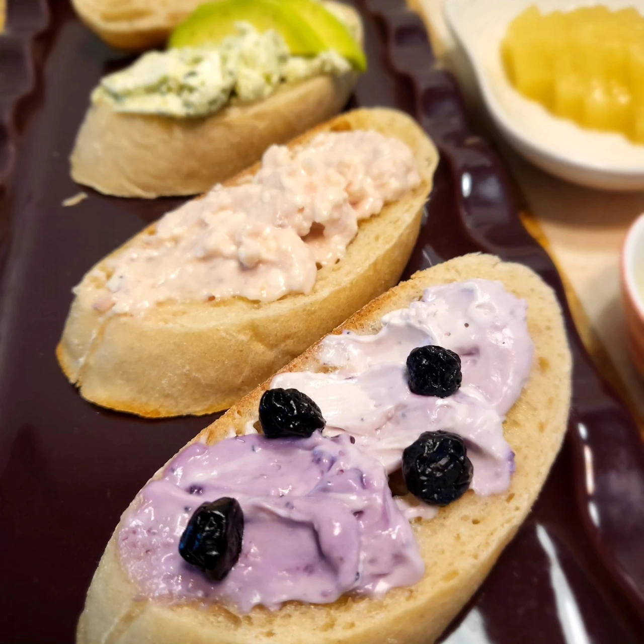 치아바타, 크림치즈, 블루베리잼, 딸기잼, 바질페스토, 아보카도