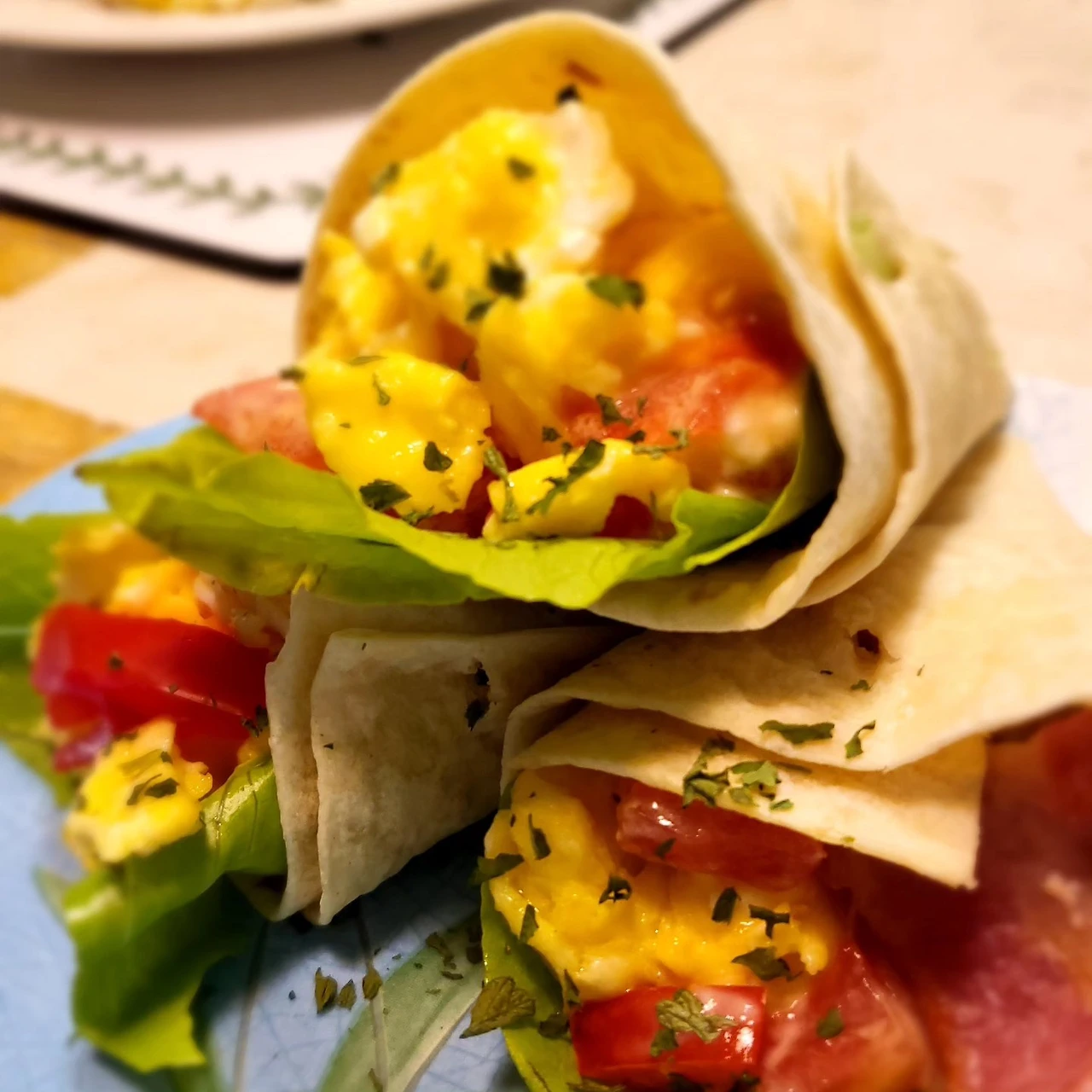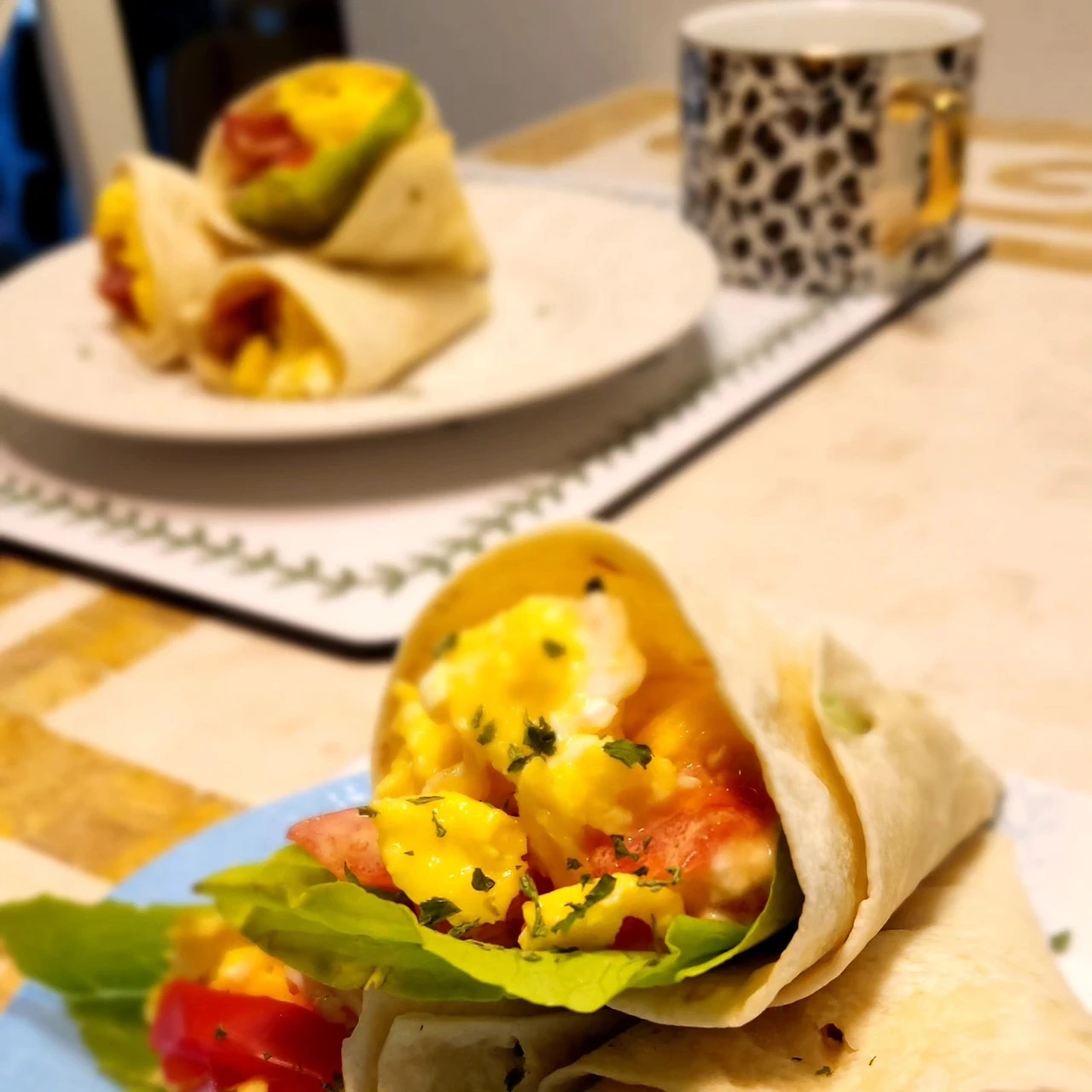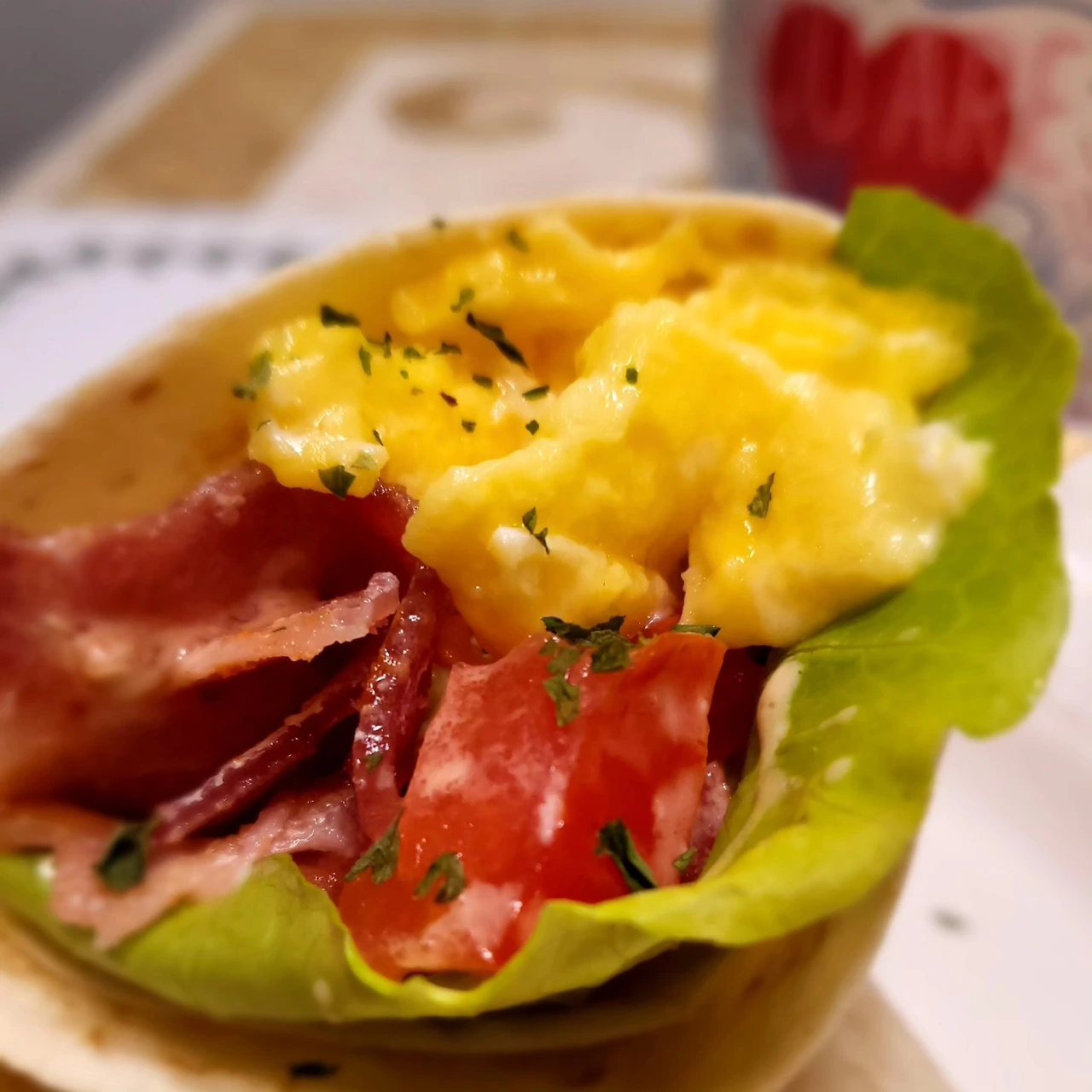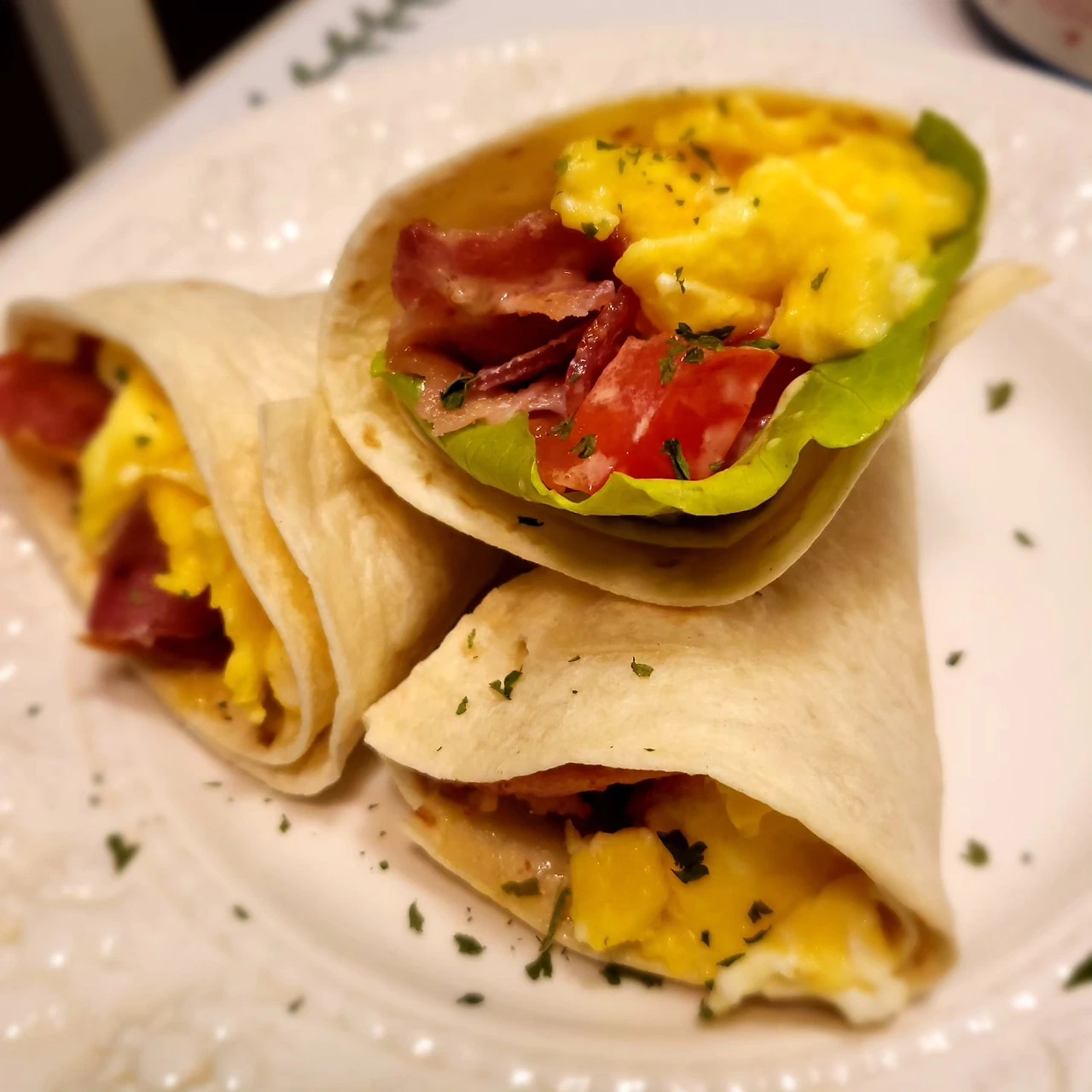 그렇게 아침밥상은 '바삭한, 에그 베이컨 또띠아 랩'이다.