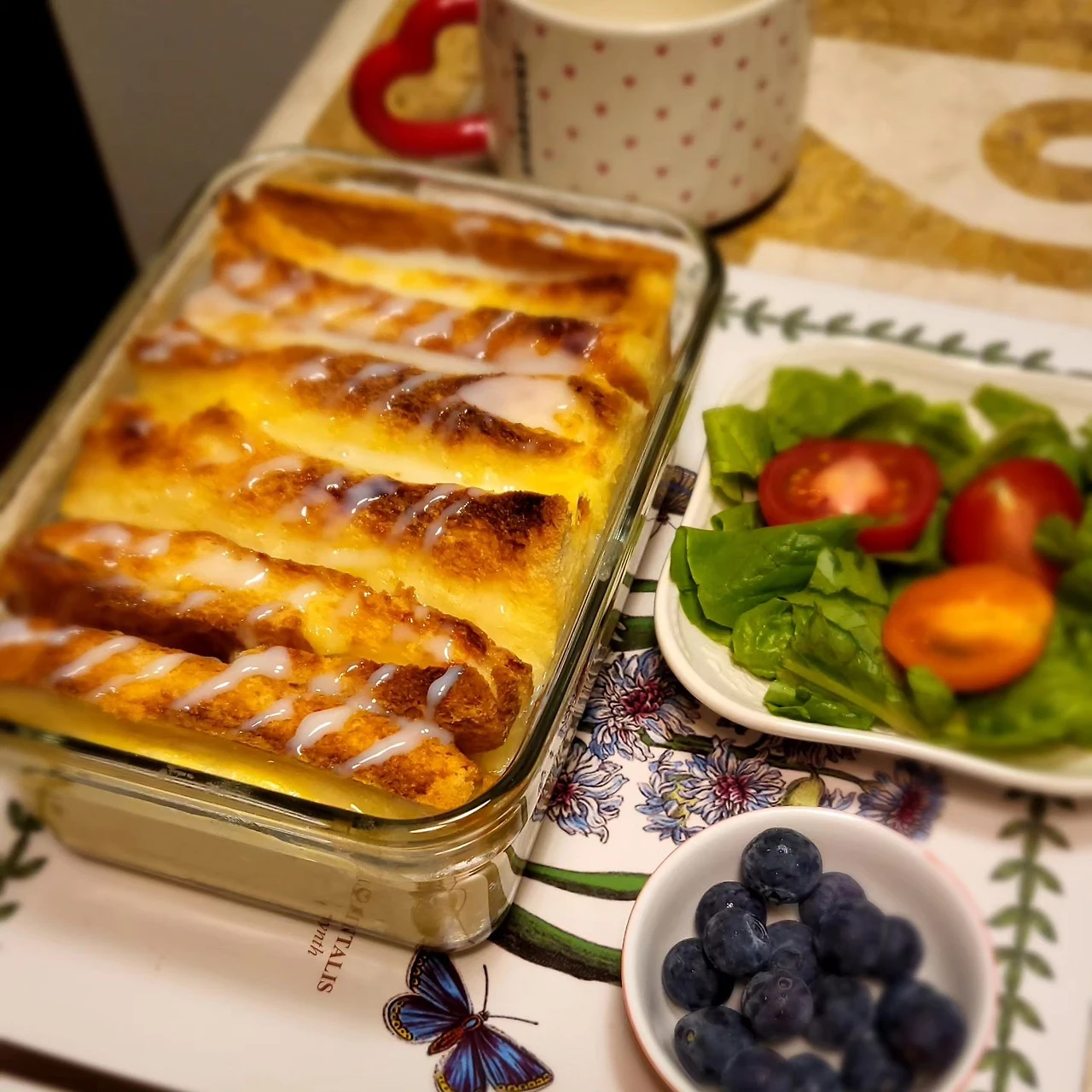 왜냐하면 이런 메뉴는 아침 준비 과정에서 이런저런 조리를 계속해야 하는 메뉴보다 한결 여유 있는 아침 준비가 가능하기 때문이다. '버터구이 우유 계란빵'의 경우에도 식빵을 준비해서 오븐에 넣기까지는 크게 어려운 과정이 없고 그 후 오븐에서 15~20분 이상 구워내야 하는 레시피이니 나에게는 오아시스 같은 메뉴인 것이다.