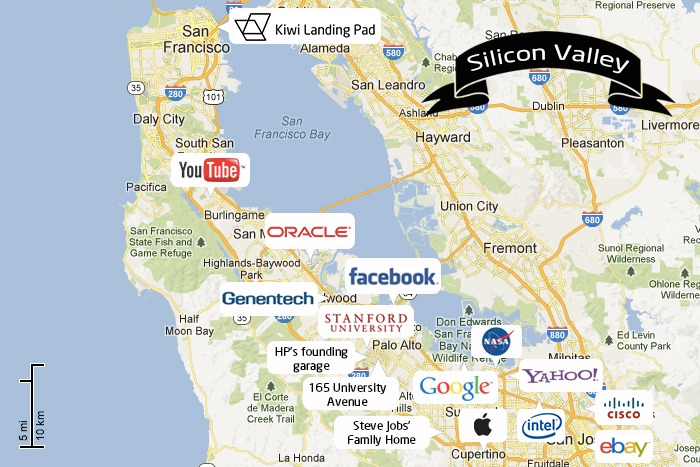 실리콘밸리는 지리적으로 샌프란시스코만 남서쪽 연안의 도시들을 의미하지만, 지명보다는 경영학적, 문화적 의미가 더 크다.