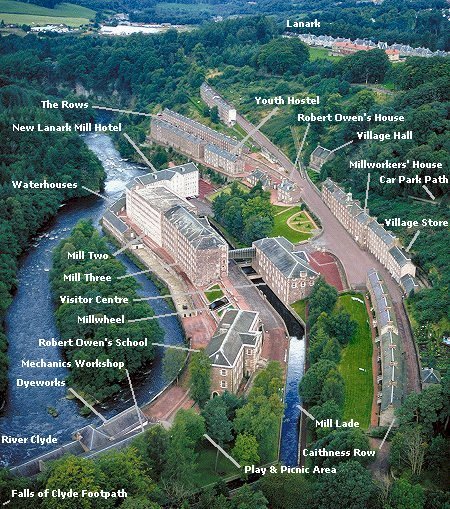 로버트 오언이 구축한 산업공동체 뉴래너크. 당시로서는 상상하기 어려운 반자본주의적, 협동주의적 운영원리를 도입해 성공을 거뒀다.오언은 이러한 발상과 실천을 자본주의와 대항을 이루는 '사회주의(Socialism)'라고 명명했다. 이 실험은 영국의 한 기업체에서만 이루어졌지만, 그 사상적 정수는 오늘날에도 협동조합 사회주의 운동으로 이어지고 있다. 사회주의를 윤리로서 받아들이는 이러한 관점은 후일 사회민주주의에도 영향을 미쳤다.