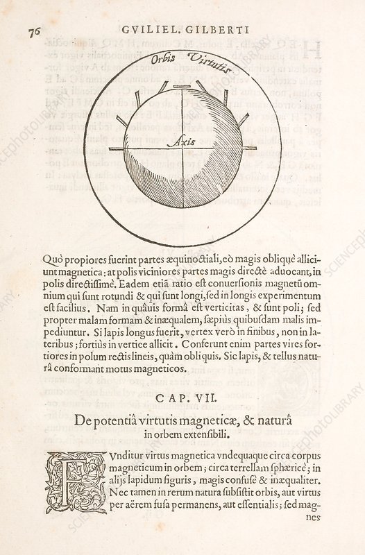 그러나 자기장을 과학적으로 이해하려는 시도는 르네상스 시대 이후에야 본격화되었습니다. 그 발단이 1600년 영국의 윌리엄 길버트가 쓴 『자석에 관하여(De Magnete)』라는 책입니다. 이 책에서 길버트는 지구가 하나의 거대한 자석이라고 했습니다. 즉 나침반이 북쪽을 가리키는 현상은 우연이나 천상의 힘이 아니라, 지구 내부의 자성 때문이라는 겁니다. 이 발상은 지구를 물리적 법칙으로 설명가능한 대상으로 보았다는 점에서 획기적이었죠. 길버트는 자석 구슬을 만들어 나침반 바늘이 어떻게 반응하는지 실험하여 이 사실을 증명했습니다. 이는 과학의 핵심 요소인 실험과 재현성을 보여주는 초창기 사례로 평가됩니다.