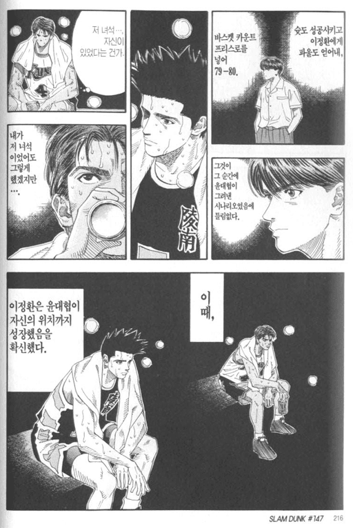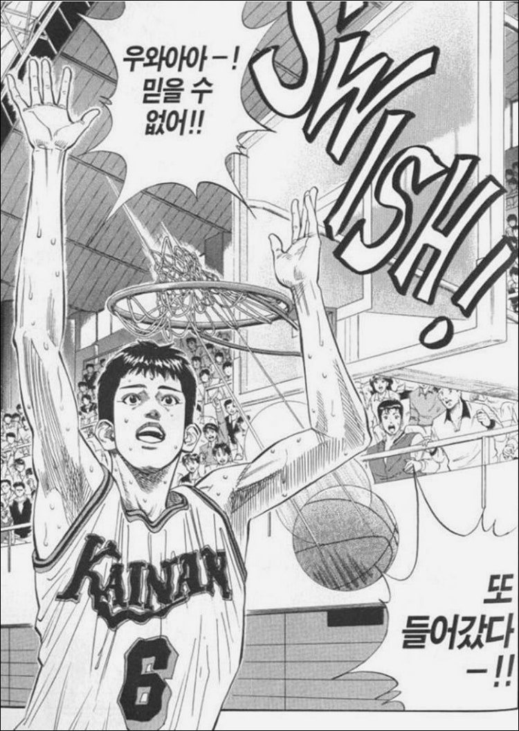 다만 샤크와 코비가 갈등 끝에 결별했듯, 정우성과 신현철도 너무 완벽해서 함께 빛나기 어려운 조합이었다. 『슬램덩크』 세계관에서 이노우에는 그 완벽함을 의도적으로 봉인함으로써, ‘강함’보다 ‘성장’에 중점을 두었다. 기술적으로는 산왕이 압도했지만, 서사적으로는 북산이 승리한 이유도 여기에 있다. 정우성-신현철의 투맨 게임이 펼쳐졌다면 『슬램덩크』의 지면은 분명 더 화려해졌을 것이다. 하지만 그 순간 이노우에가 담으려 한 성장의 메시지는 사라졌을지도 모른다.