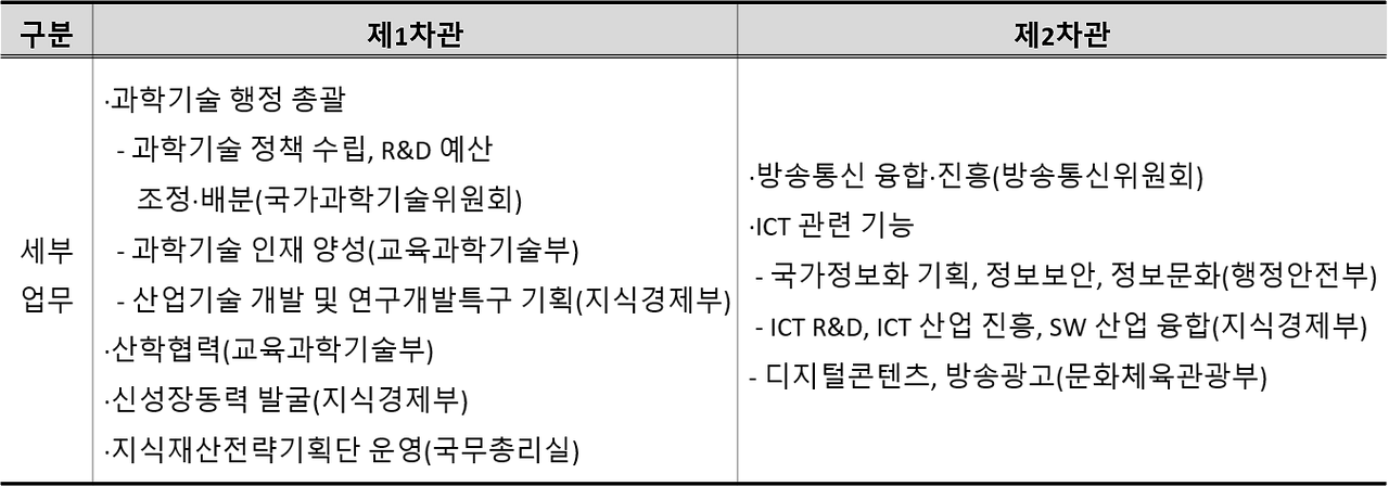 [표] 미래창조과학부 업무 구성(제18대 대통령직 인수위원회(2013)에서 재구성)