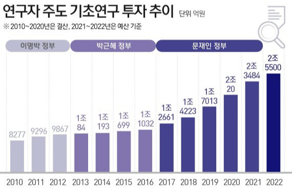 문재인 정부 과학기술 거버넌스에서 가장 눈에 띄는 부분은 연구자 주도 기초연구사업에 대한 파격적 증액이다.
