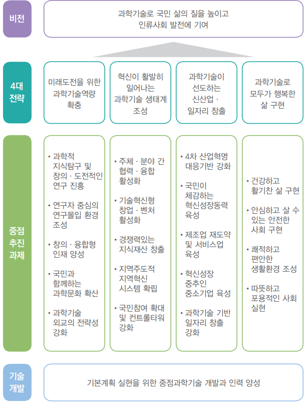 [그림] 제4차 과학기술기본계획의 비전 및 중점추진과제(기획재정부 외, 2018)