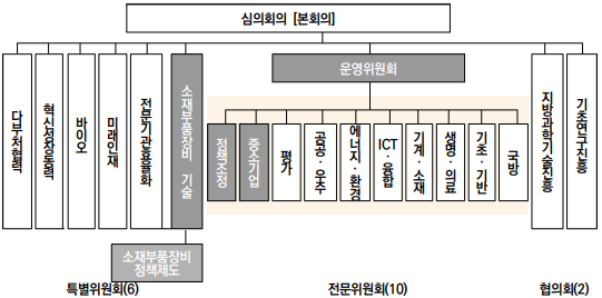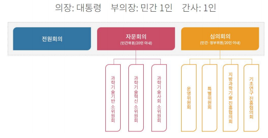 [그림] 국가과학기술자문회의 및 심의회의 조직 구성(이도형 외, 2021)