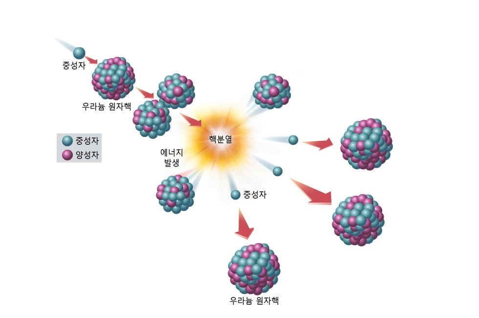 핵분열은 기하급수적인 연쇄반응으로 이어지며 엄청난 에너지를 내놓는다.