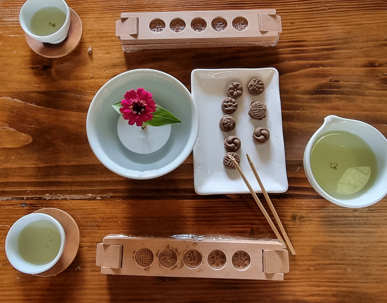 이번 템플스테이에서는 지난가을에 방문했을 때 하지 못했던 두 가지를 경험할 수 있었다. 첫 번째는 전통야생차 체험관에서 다례와 다식을 체험한 것이고, 두 번째는 계곡 물에 발을 담그며 승선교의 경치를 조금 더 가까이서 즐긴 것이다.