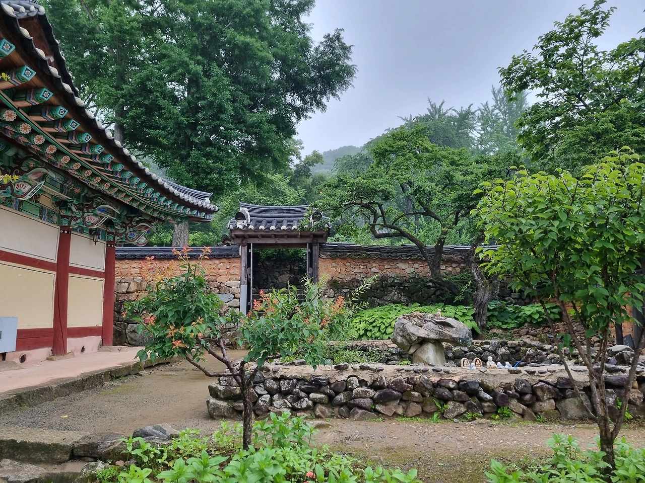 머무는 동안 대부분 날씨가 화창했다. 셋째 날에만 반나절 정도 비가 부슬부슬 내리길래 우산을 쓰고 빗소리를 들으며 산사 한 바퀴를 천천히 걸어보었다. 빗줄기가 굵어지자 대웅전 앞 처마 밑에 잠시 서서 뉴에이지 음악을 들으며 비 내리는 풍경을 가만히 보고 있자니 정말 운치 있고 평온했다. 그 순간이 오랫동안 기억에 남을 것 같다.