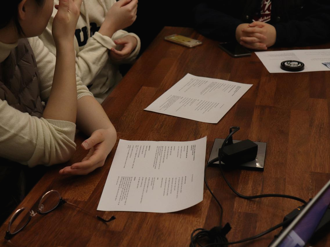 을 저희의 독자적이고 구체적인 진행 방식이라고 하면 ‘모의 토론’이 있어요. 실제 토론과 형식은 똑같이 하면서 한 명은 반대, 한 명은 찬성, 한 명은 사회를 맡은 상태로 일대일로 진행하는 거예요. 사실 한 명이 (갑, 을, 병이라는) 세 역할을 다 하는 거니까 되게 힘들 수는 있어도, 실제로 토론하는 거다 보니 찬/반의 논지를 더 명확히 알게 되고, 다른 역할에 대한 이해도도 높아져요.