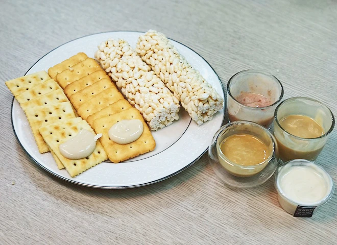 패키지는 베스트 중에 하나. 태블릿PC만한 상자를 열어보면, 20ml씩 총 8개의 플라스틱 용기에 나눠 담겨 있다. 마카롱만한 아기자기한 사이즈로, 손바닥에 거뜬하게 올릴 수 있다. 여기에 바로 퍼먹을 수 있도록 일회용 수저도 함께 제공한다. 소비자를 위한 세심함이 느껴지는 부분이다.