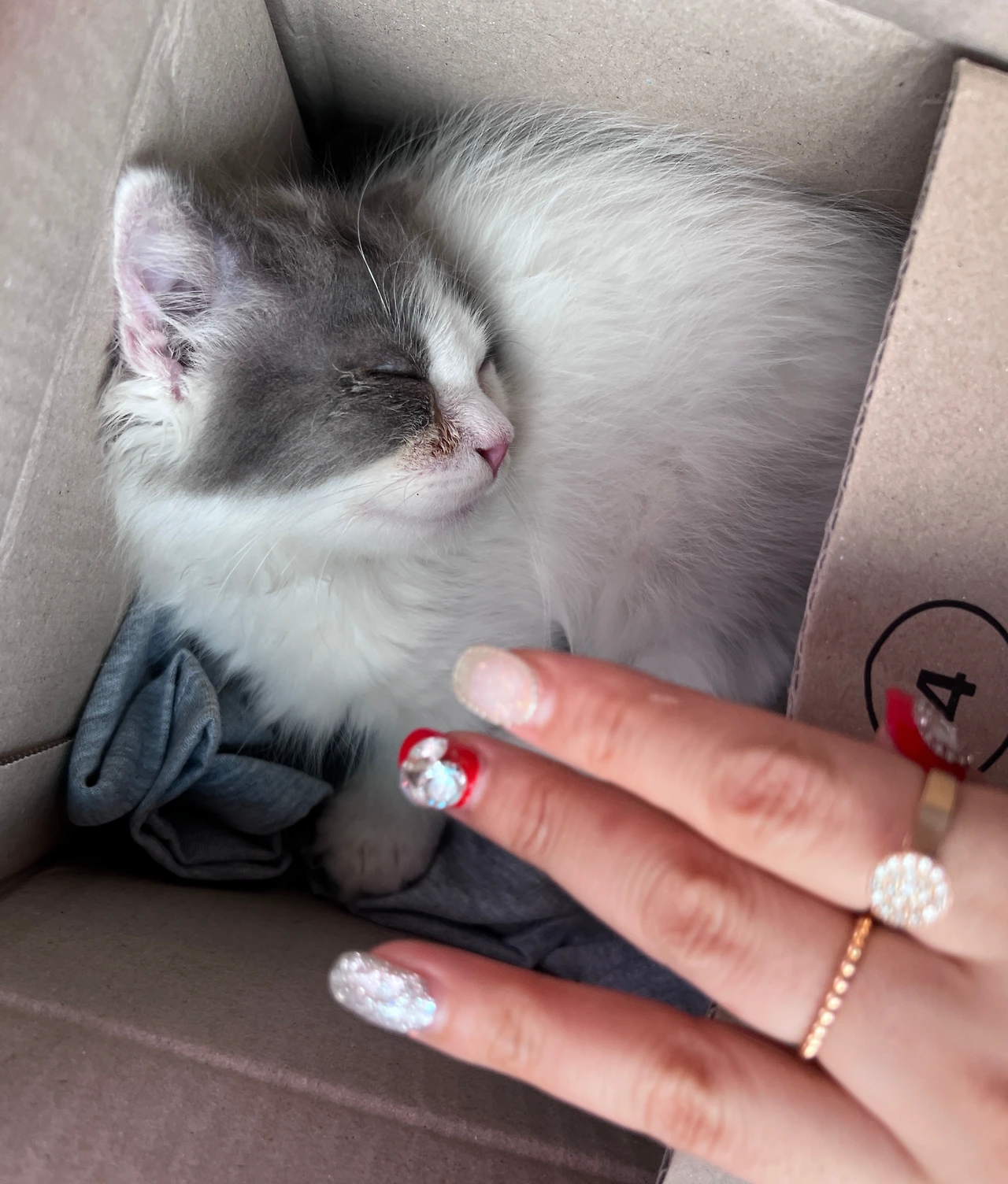 아주 작은 박스 안에 쏙 들어가 잠들어 있는 고양이.