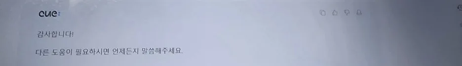 마지막으로 '고마워'하고 인사했더니 CUE 도 예쁘게 인사를 한다. 웬만한 사람보다 소통이 자유스러워질 듯하다. 멋진 친구가 생겼다.