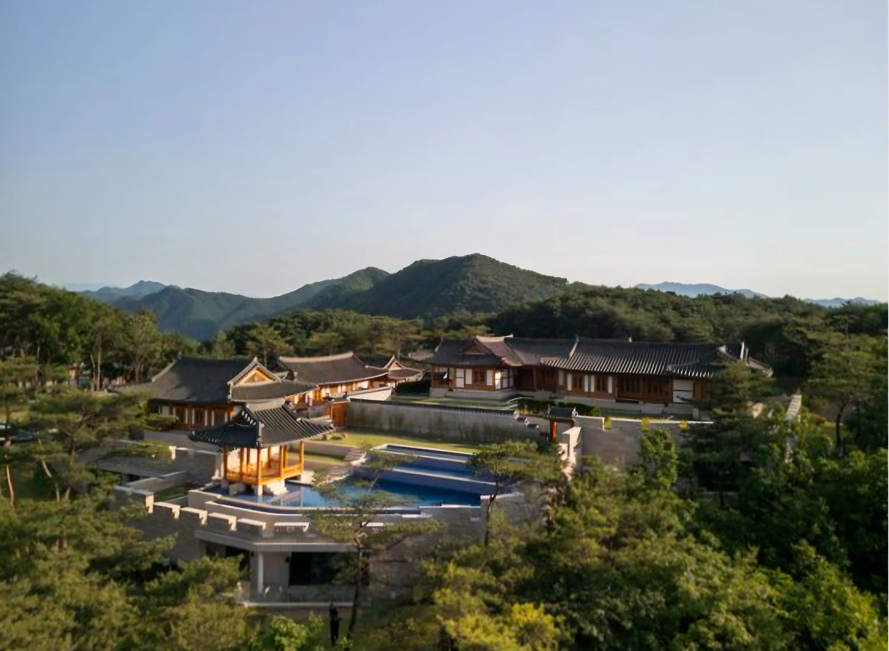 더 한옥 헤리티지 리조트는 10만평 대지에 18개 구역으로 나뉘어 개발되고 있으며 현재 독채 한옥 두채와 궁궐 콘셉트의 선돌정' 이 완성되었고 14개의 한옥 호텔은 내년 6월 완공 예정이다