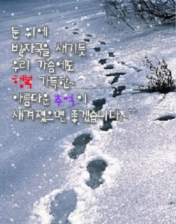 아파트 정문을 빠져나가려는데 낮은 난간에 쌓인 눈에 글씨가 보인다