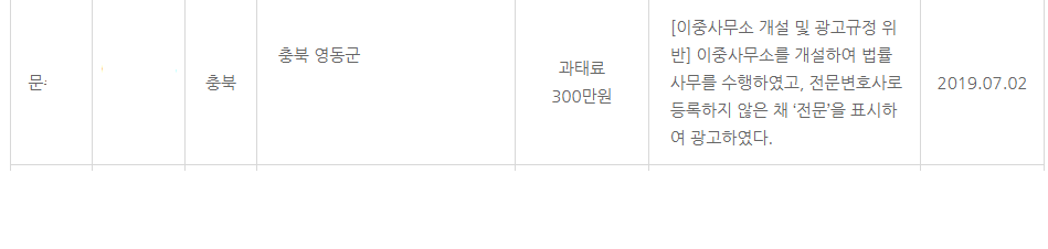 대한변호사협회 변호사 징계내역, 전문변호사가 아닌데 표시하는 경우 과태료 부과대상이다