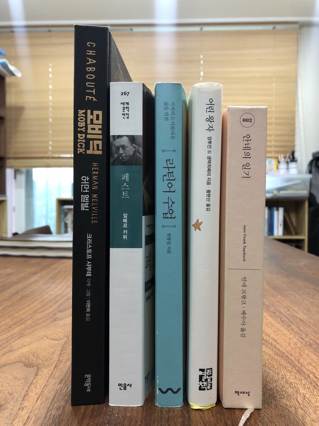 '책으로20' 첫 모임은 2월 20일이었다. 함께 읽은 책은 생텍쥐페리의 <어린왕자>였고, 우리는 '어른'에 대해 '책임'에 대해 이야기했다. 두 번째 책은 멜빌의 <모비딕>이었고, '일'에 대해 '집념'에 대해 생각을 나누었다. 세 번째 책은 카뮈의 <페스트>였고, 코로나에 확진된 이력을 가진 우리 두 사람은 '역병'의 시대에 살아가는 여러 방법을 논의했다. 네 번째 책은 한동일의 <라틴어 수업>이었고, '공부'에 대해 '나 자신'에 대해 생각을 해봤다. 상반기 마지막 책은 안네 프랑크의 <안네의 일기>였고, 다시 한번 '어른'에 대해 그리고 '꿈'에 대해 이야기를 했다. '책으로20'은 '고전'에 속한 도서들을 주로 읽었고, 고전에서 지혜를 배우자는 모임이다.